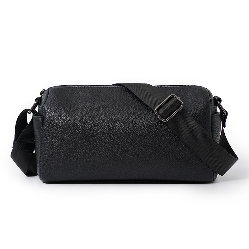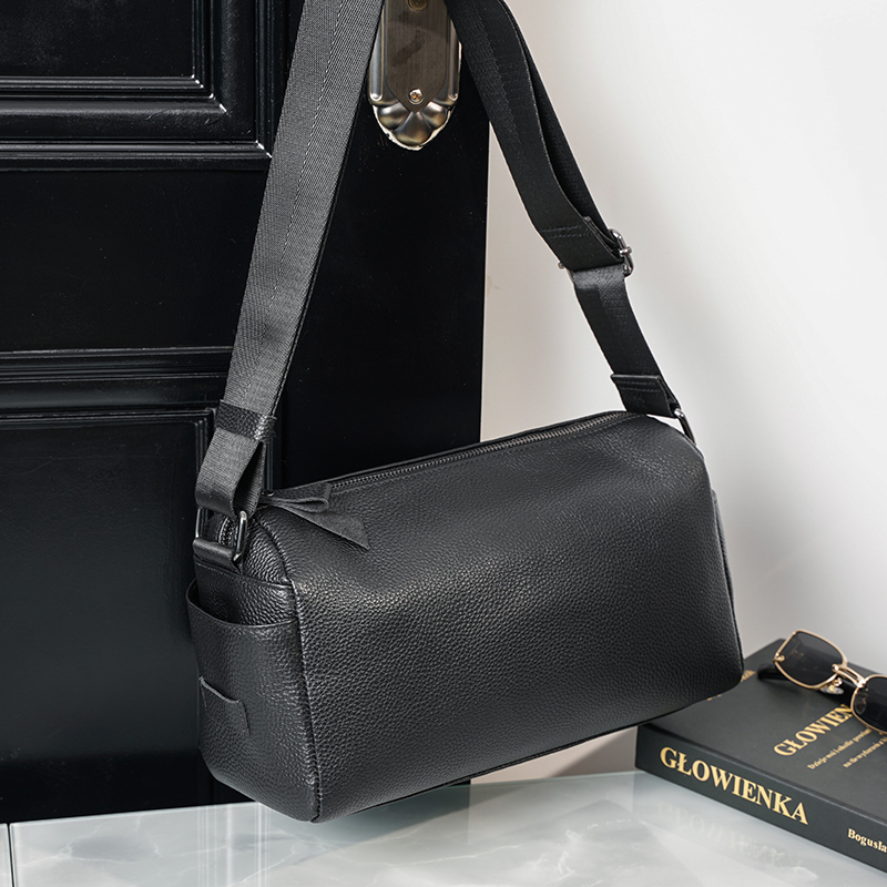 Head Layer Bull Leather Single Shoulder Bag Slanted Satchel Tide Cylinder Bag Business Casual Pure Color Korean Version of Fashion Tide Bag