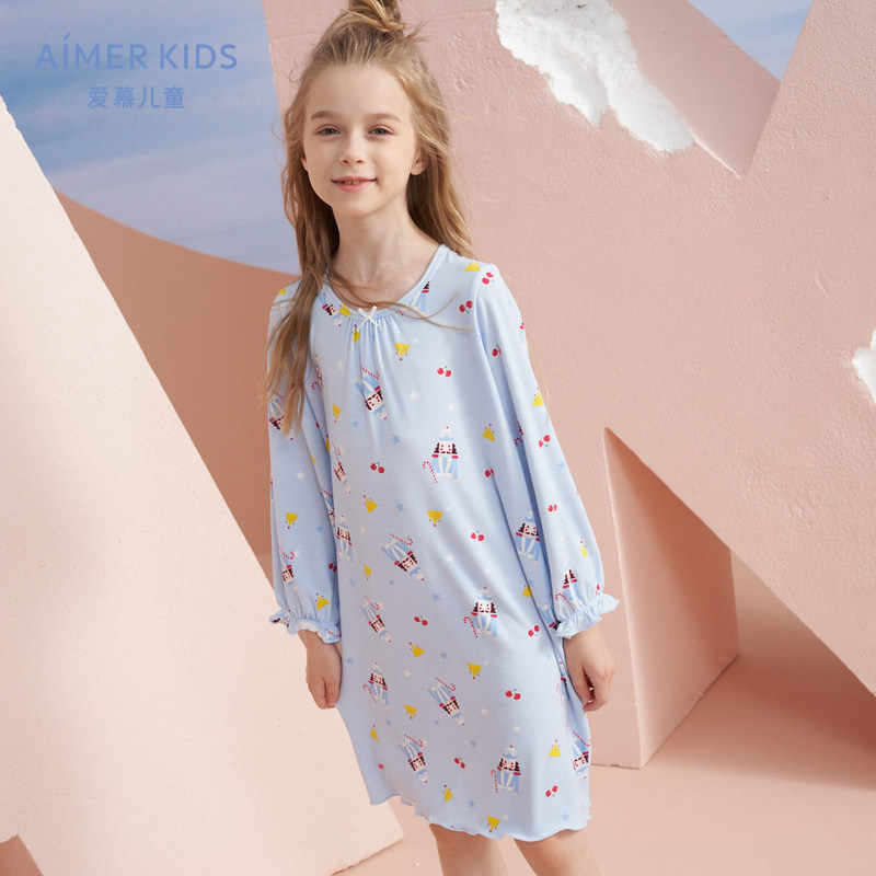 (Class A new product)Love children, girls, baby wood source fiber girls, autumn long-sleeved nightwear, home pajamas