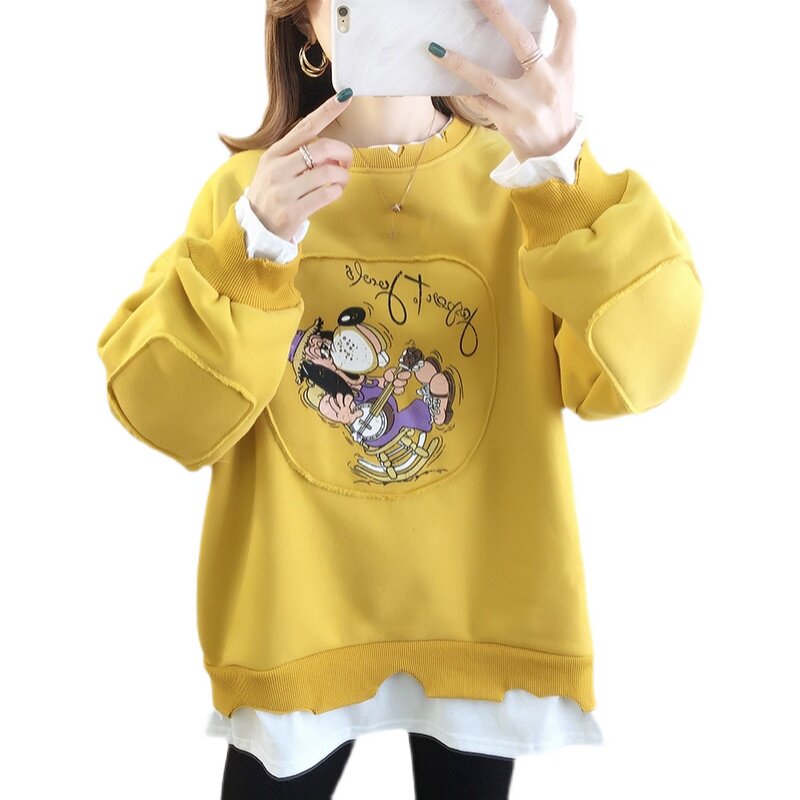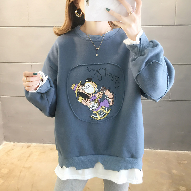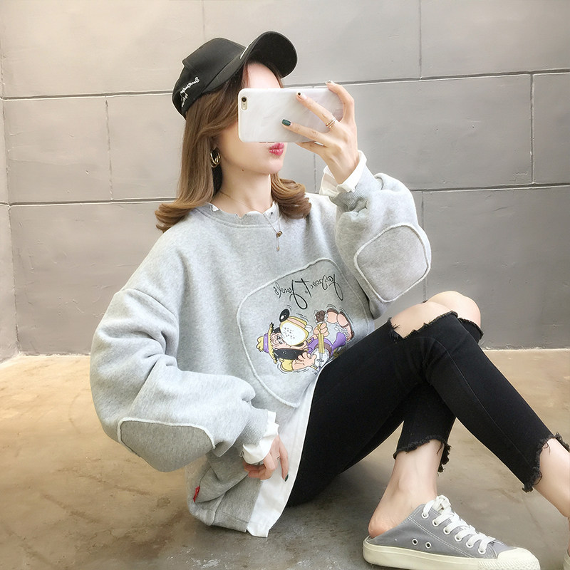 2021 Fake two pregnant women in autumn dress new Han edition fashion loose round collar printing in a large - code female suit