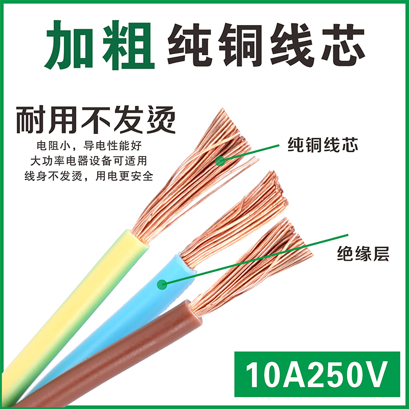 Electric rice cooker power cord national standard plug three-hole groove product suffix soymilk machine computer host electronic pressure cooker pure copper