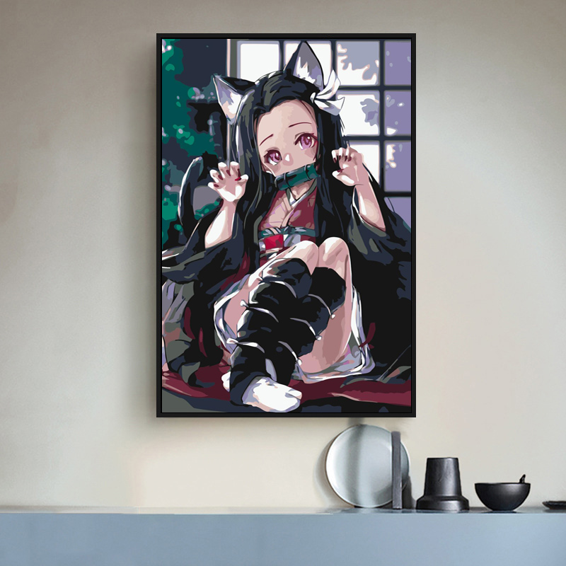 Ghost killing blade hand-painted coloring digital oil painting Japanese-style anime coloring diy filling oil painting living room decoration painting
