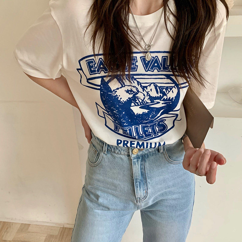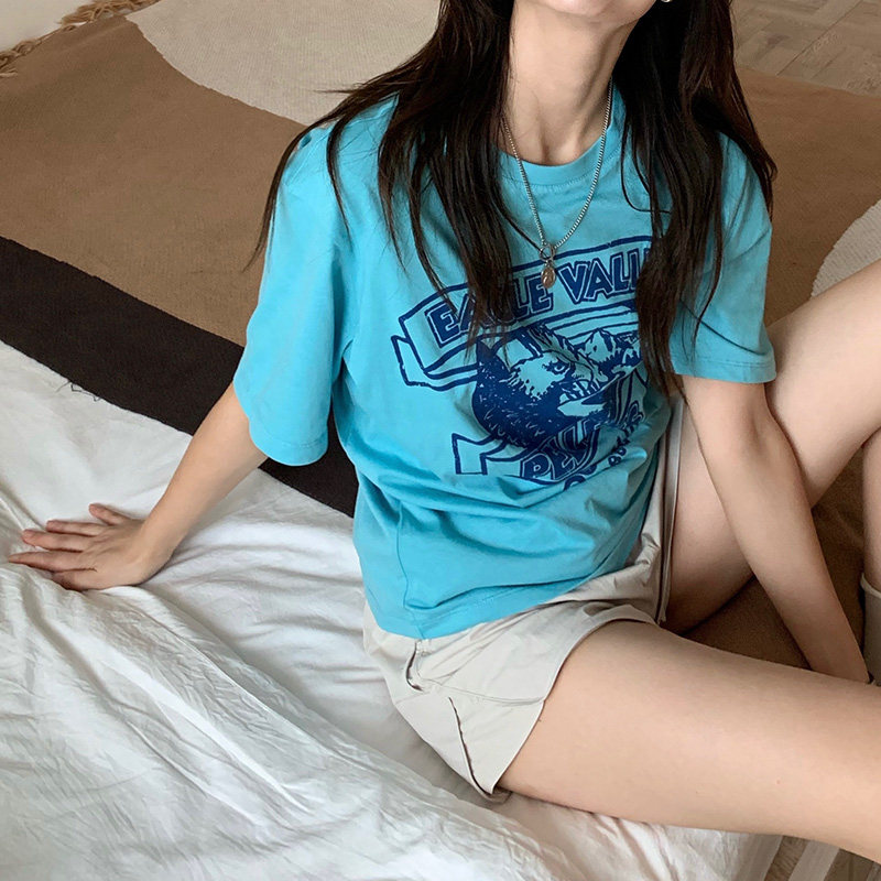 Small Ra 1937 Fortune Blue Hawk White Blue Million Cotton Needle Short Sleeve T - shirt summer