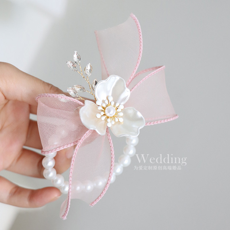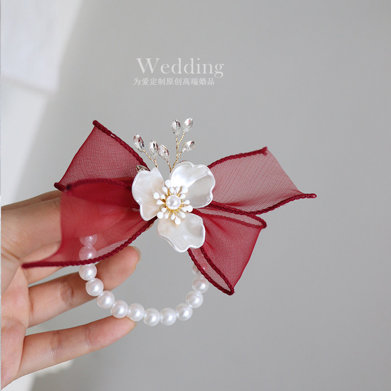 Rice white bracelet Korean pink bracelet Wine Red Hand Ring Chic Hand Ring Chic Hand Ring Shaped Rice White Yarn With Hane Pink Yarn With Wine Red Yarn With Apricot Colored Yarn With An Apricot Colored Yarn With An Apricot Colored Yarn With An Apricot