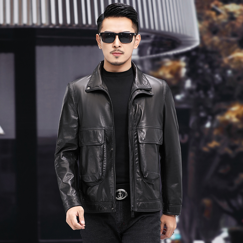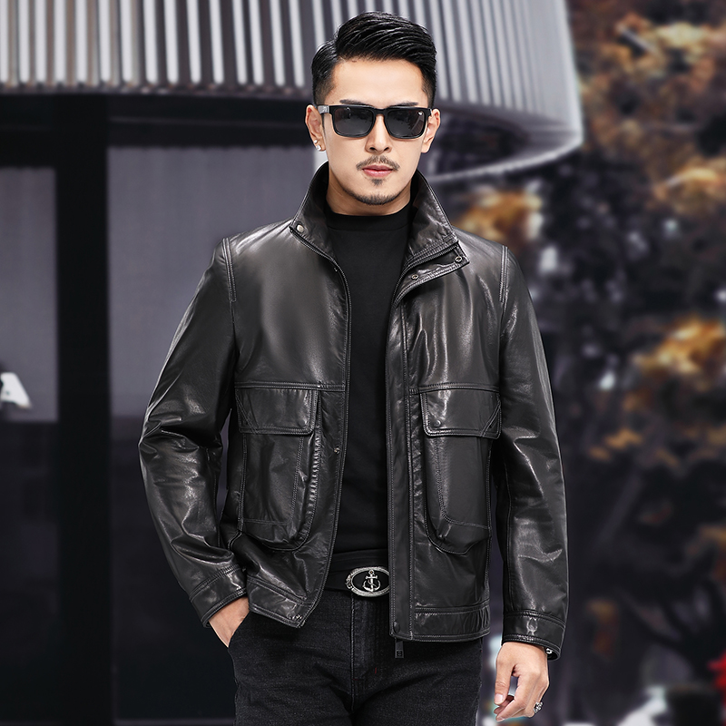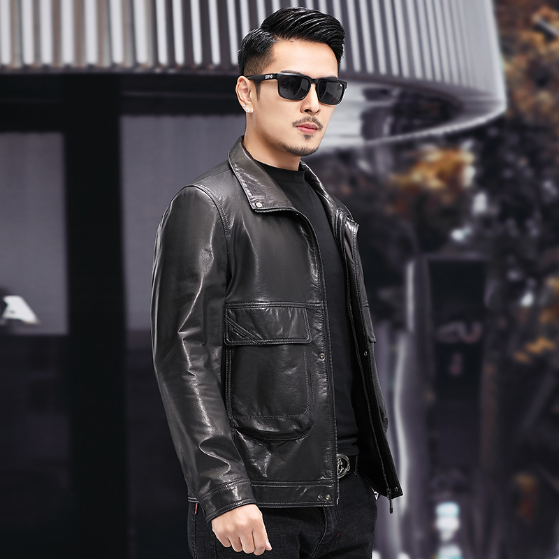 Spring Autumn New Head Layer Small Bull Leather Jacket Trendy Henning Genuine Leather Leather Clothing Male short Collar Youth Locomotive Jacket