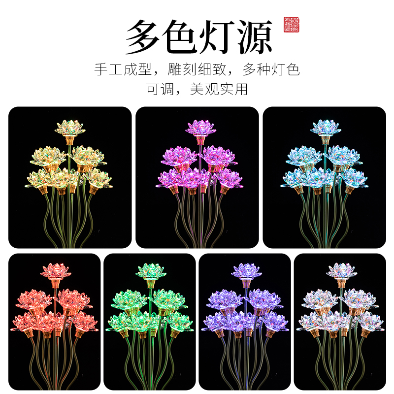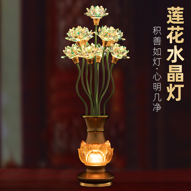 The Purple Transport Cabinet Nine Pints Lotus Lantern is dedicated to the Seven Colorful Crystal Chaine Lantern Buddha Hall for the Buddha Before the Buddha is supplied for the lamp to be plugged in.