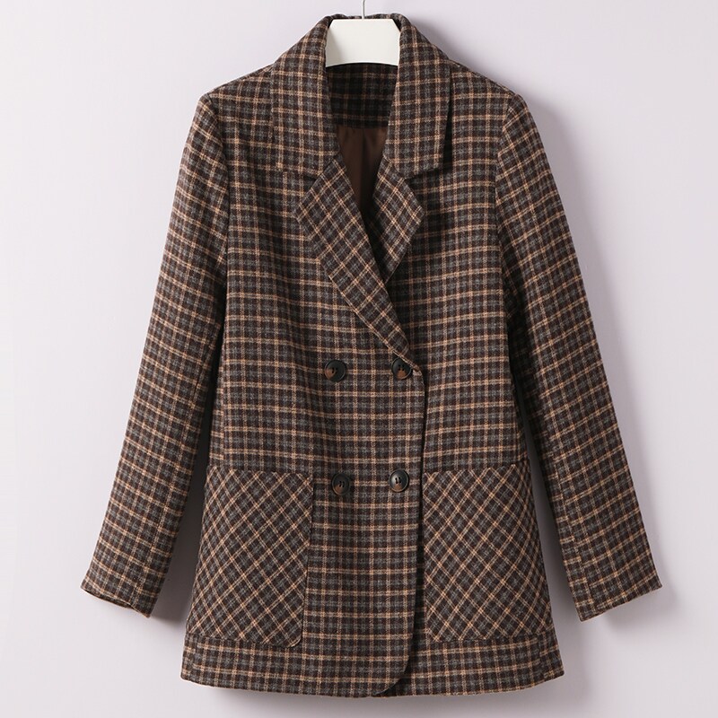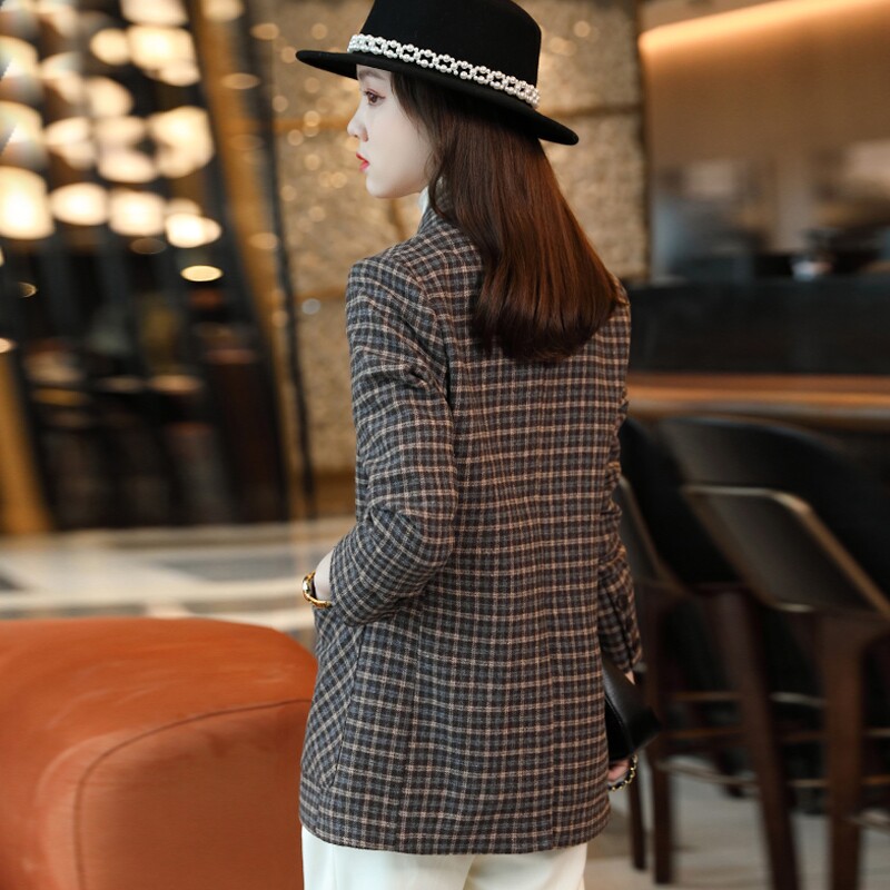 Plaid suit jacket female niche 2022 spring autumn new Korean version casual loose autumn and winter fur with little west suit blouse