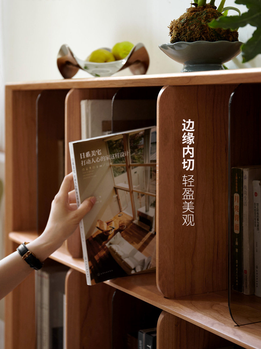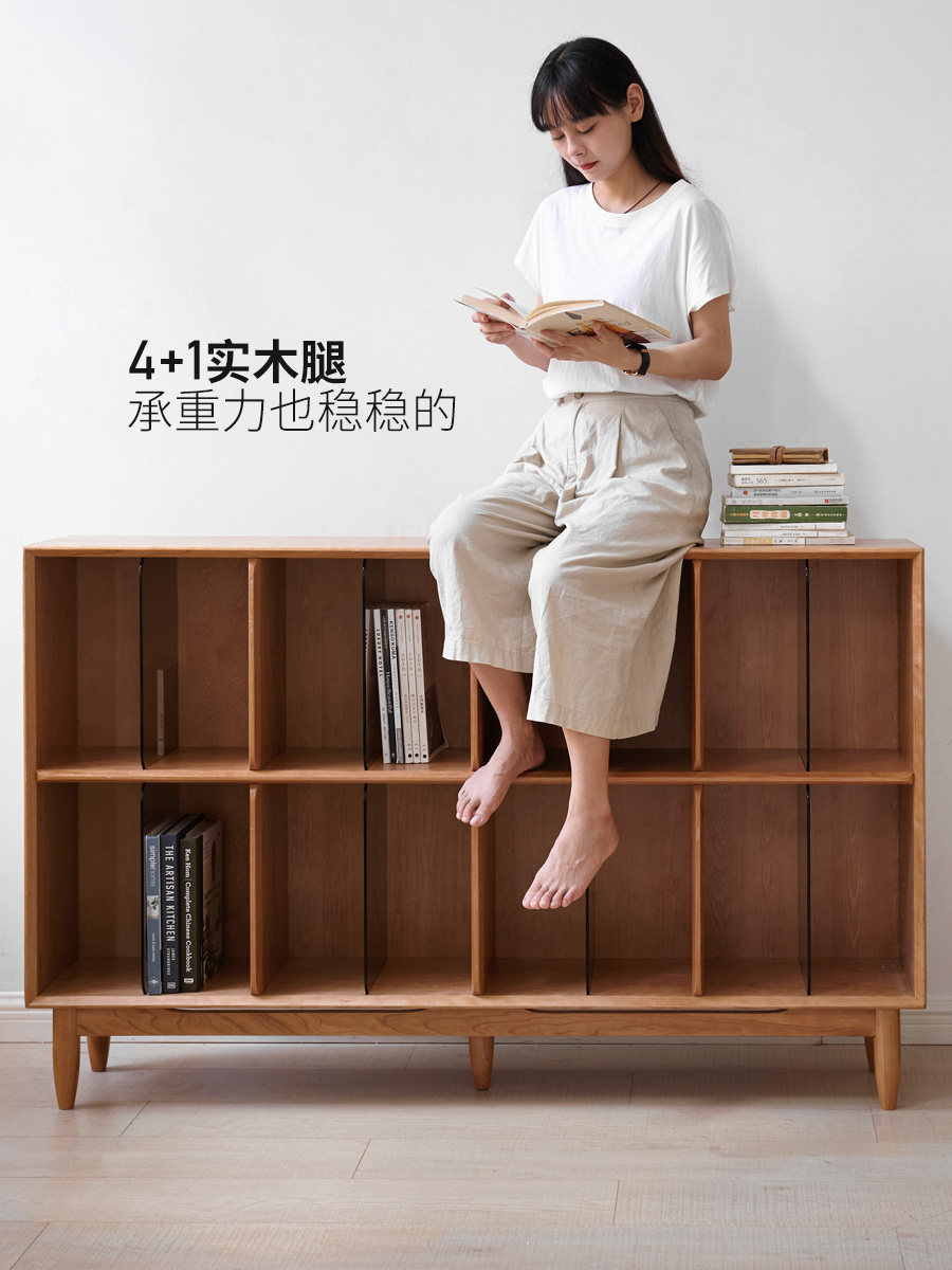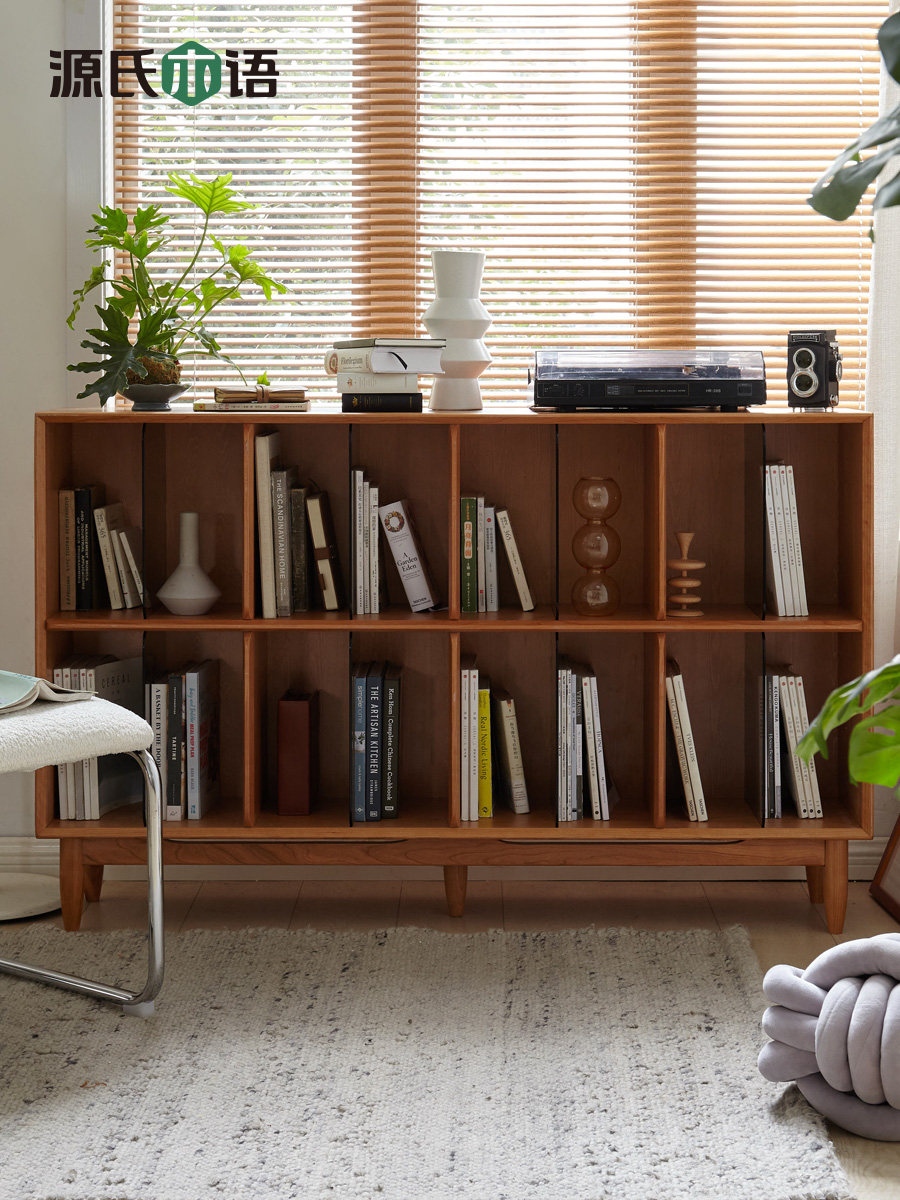 Genji wooden language solid wood bookcase storage cabinet integrated display cabinet cherry wood lattice cabinet log shelf low bookshelf