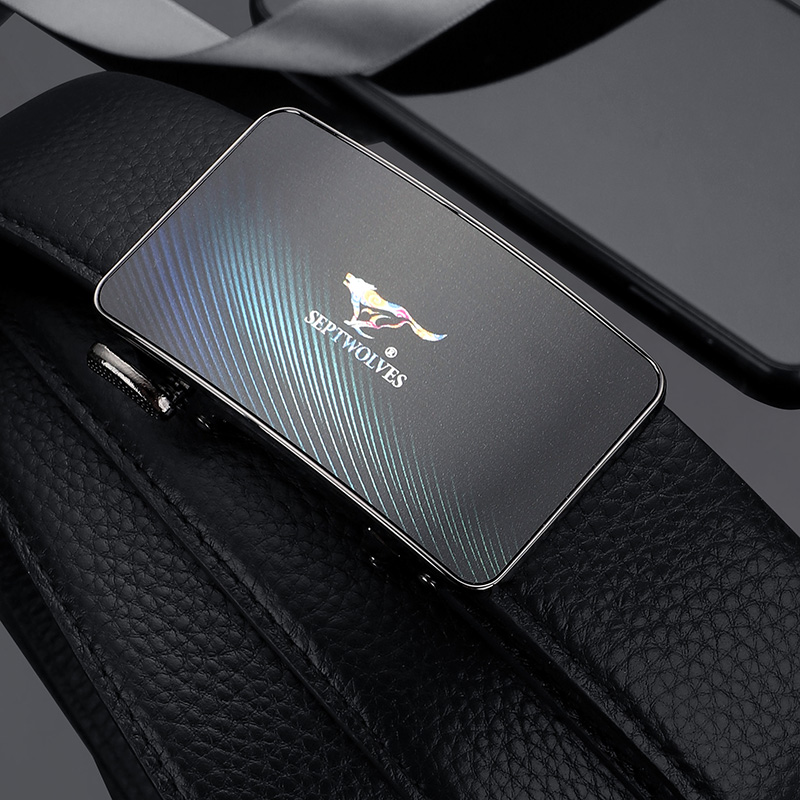 Septwolves men's leather belt Korean version casual leather middle-aged fashion belt automatic buckle business wide pants