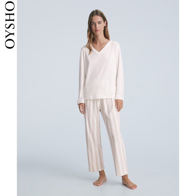 Spring Summer Discount Oyho Coral Suede Striped Straight Drum Warm Pants Plus Suede Home Sleeping Pants 32033742806