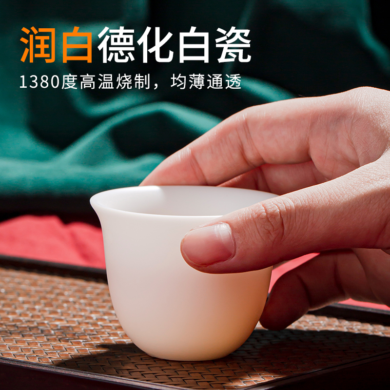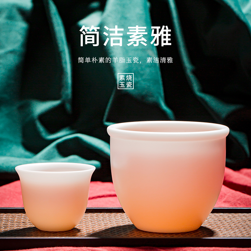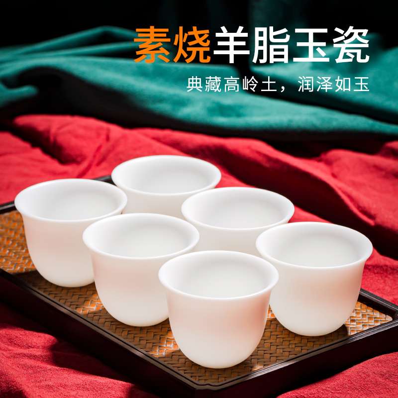 Su-burned mutton fat jade porcelain tea cup household kung fu tea cup master cup single cup large-capacity ceramic tea cup drinking tea cup