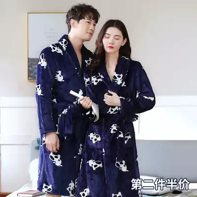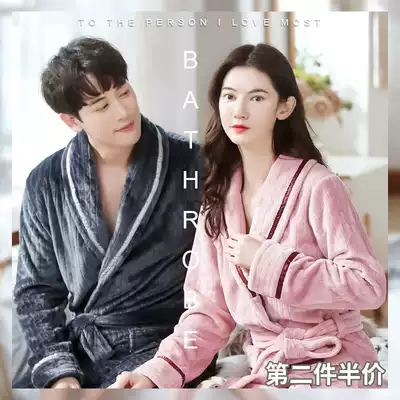 Flannel bathrobe couple pair Net red bath towel dual-purpose female male thick pajamas long version adult hotel towel