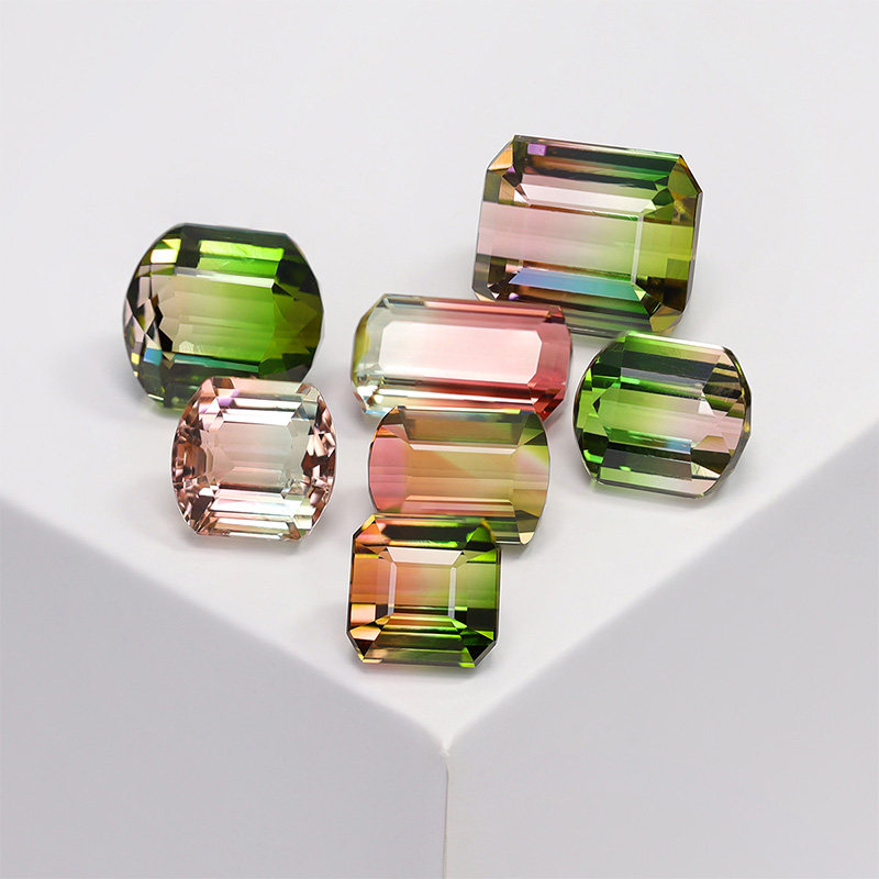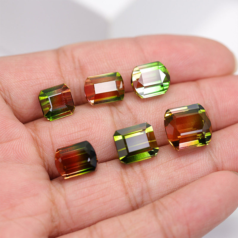 Natural Colourful Gem Beech Deep Red Bicolor Net Red Small Fresh Square Cut Nude Stone Inlay Custom Ring Pendant BX10