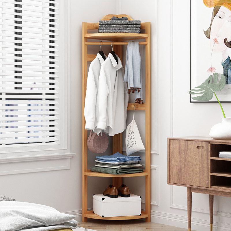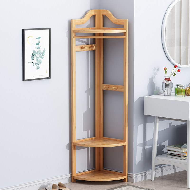 Corner Clothes Hat Rack Floor Bedroom Corner Rack Solid Wood Multifunctional Hanging Hanger Home Wall Corner Holding Layer Shelf