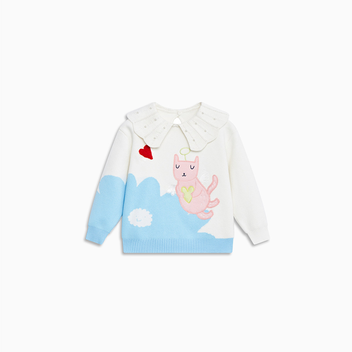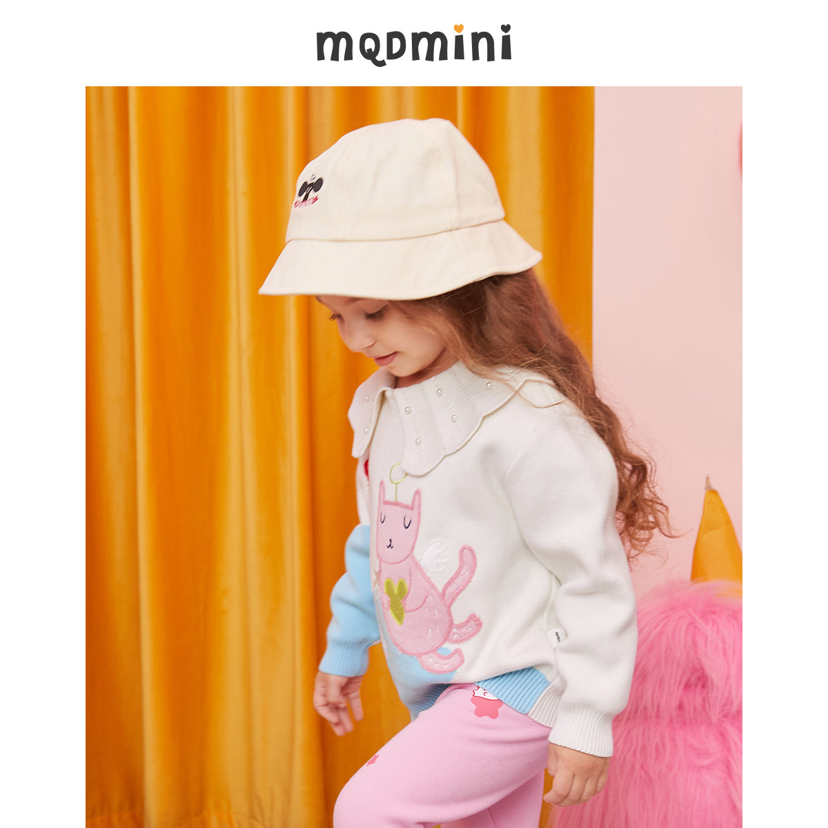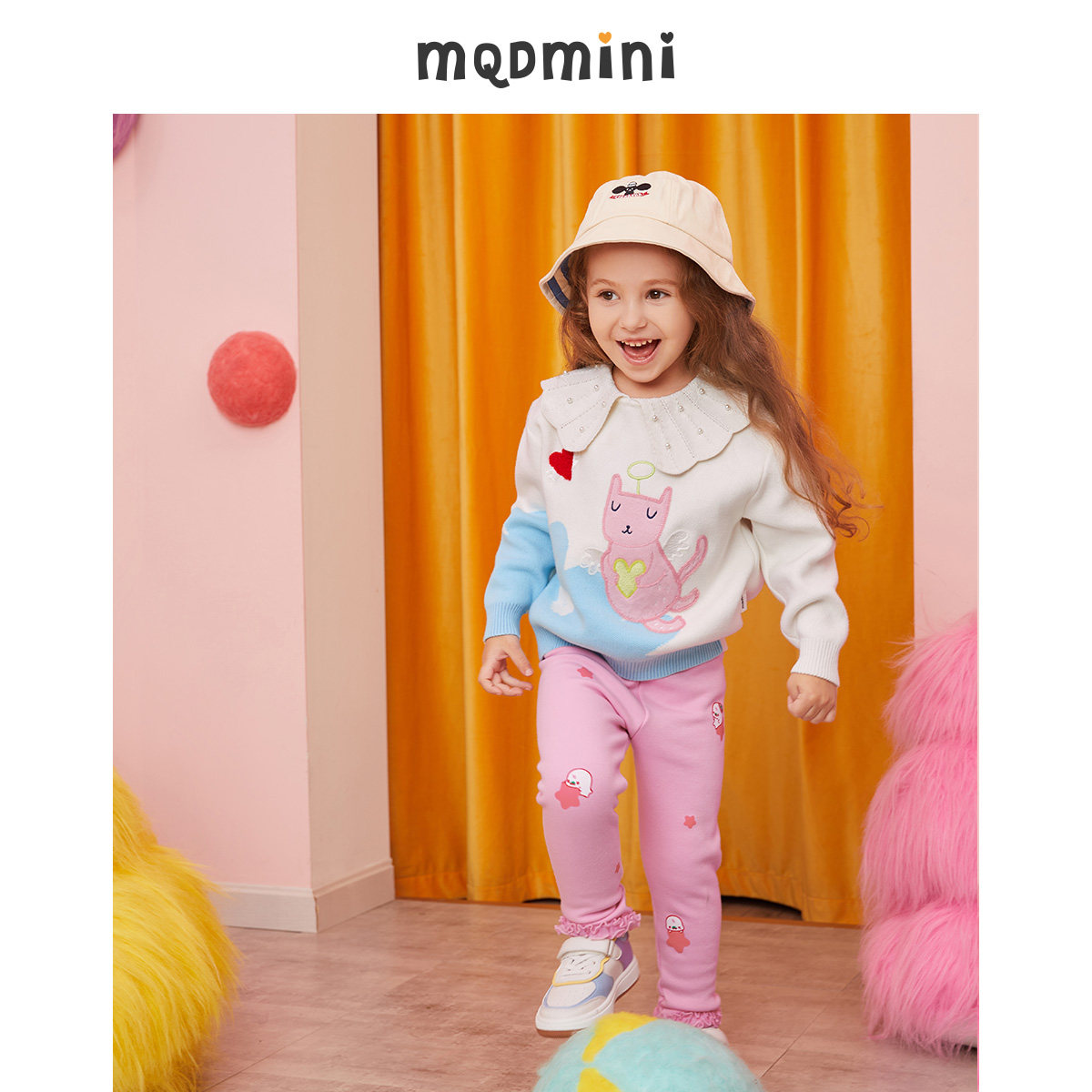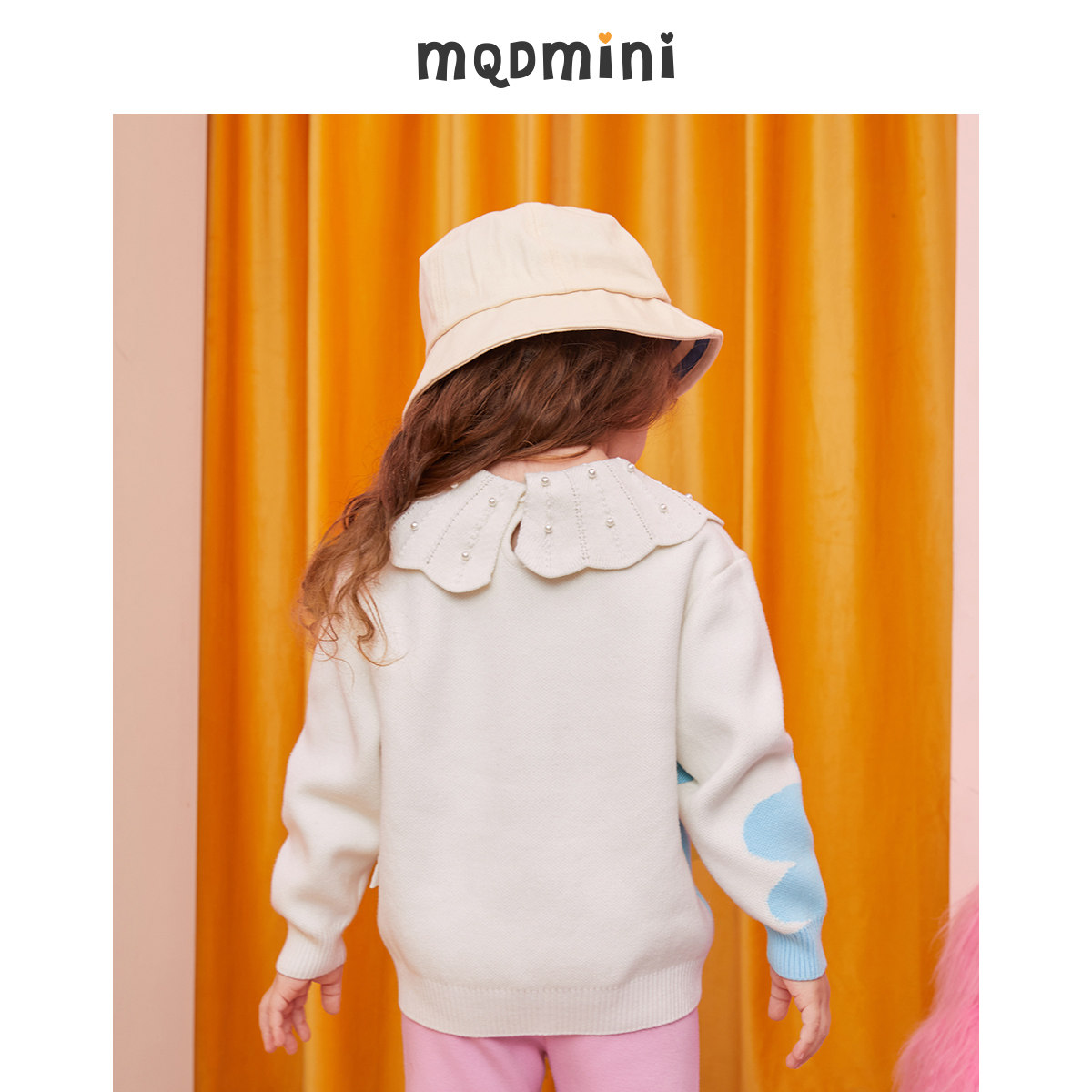 MQD children's clothing women's turned-over-knit cardiovert 2021 winter new cute cartoon female baby thickened warm sweater