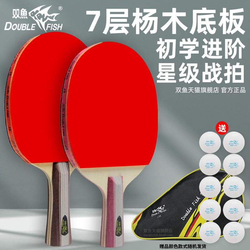 Double Fish Children Table Tennis Racket High Elasticity Professional Grade Long Handle Racket Single Pat Cross Pat Straight Beat Arc Ring Soldier Dabbing Racket