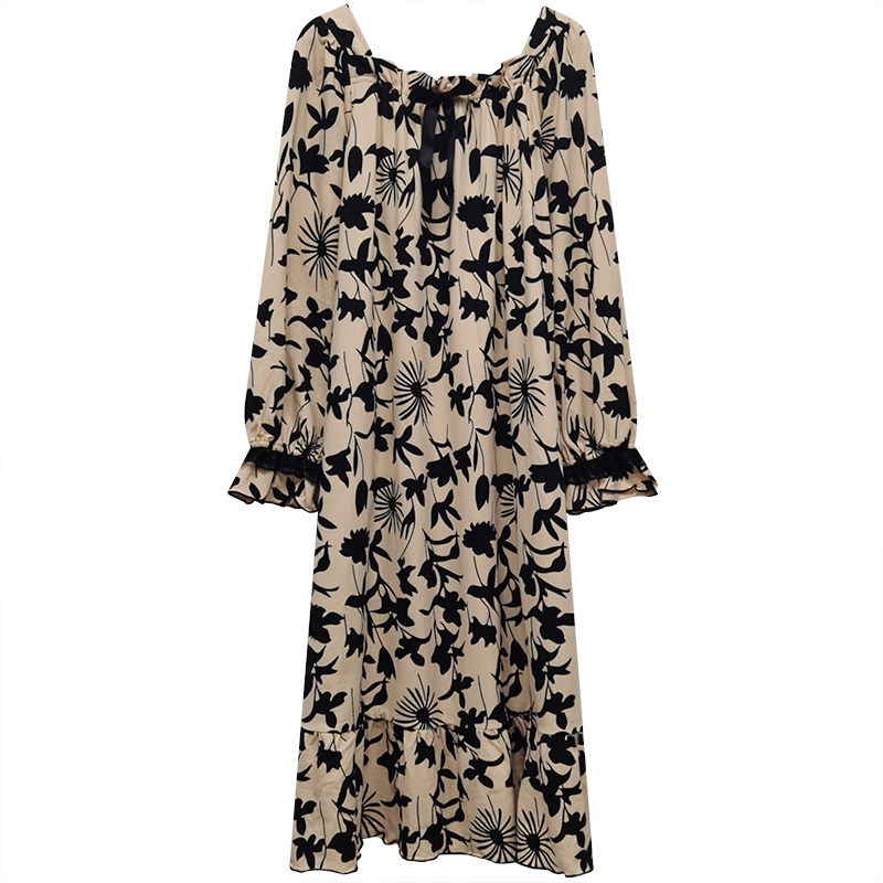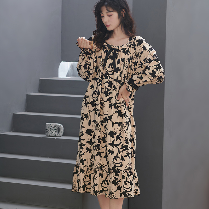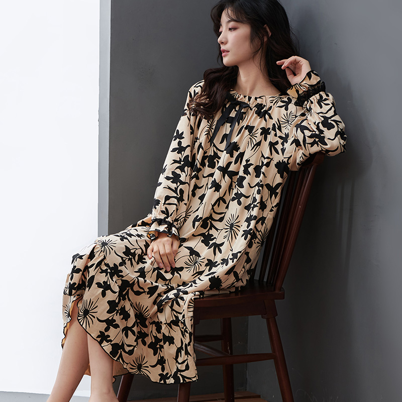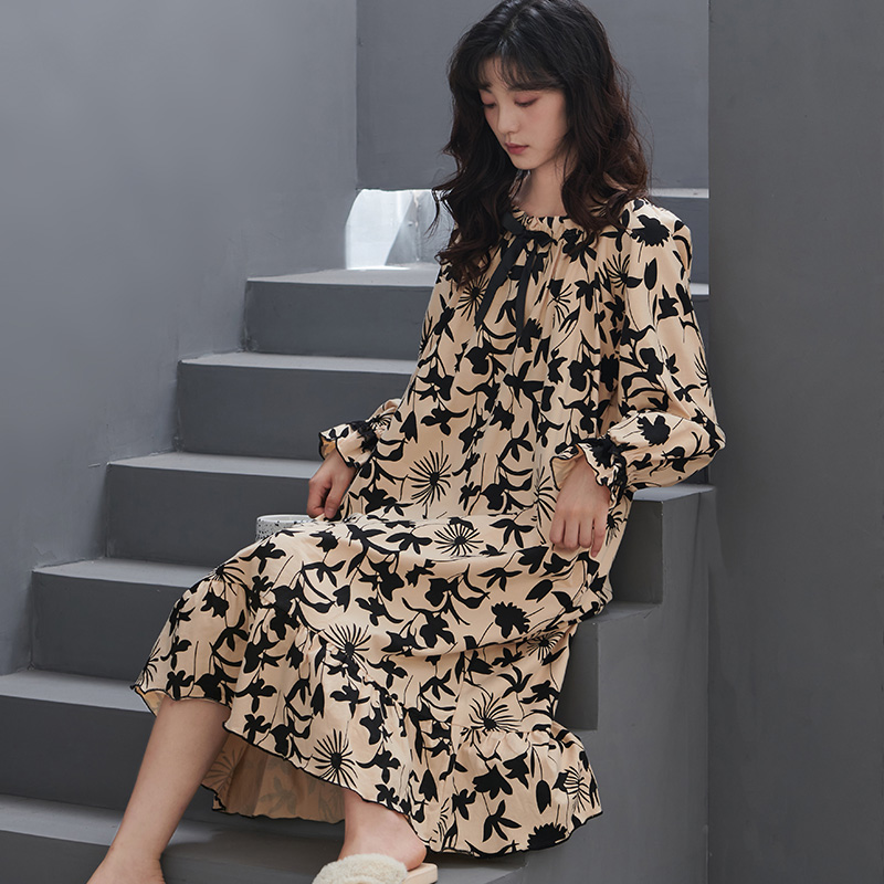 Sleeping Dress Lady Spring Autumn Season Sexy Pure Cotton Long Sleeve Pyjamas Princess Wind Sweetness and Relaxed Ocean Dress Autumn Fairy Skirt