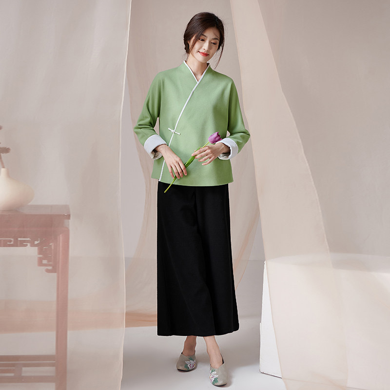 Improved version of daily Tang clothes Zen tea suit women suit autumn new Chinese Zen women's wear tops