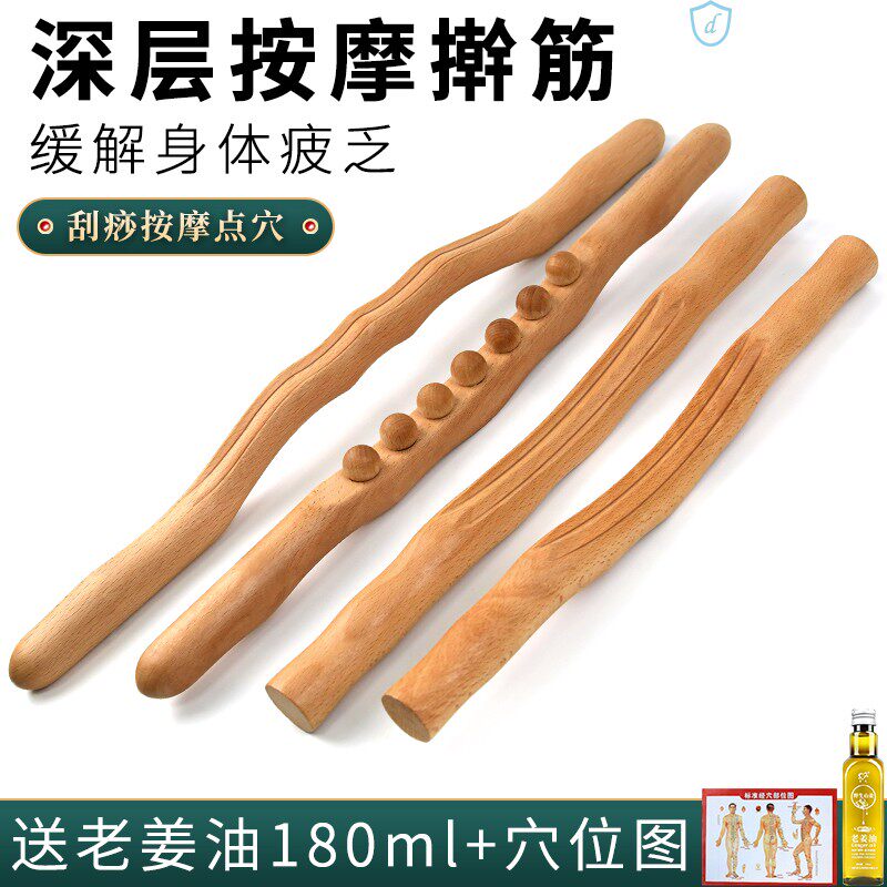 Eight-bead exercise stick eight-bead beech wood stick rolling stick rolling stick open back meridian shoulder neck back dredging artifact scraping