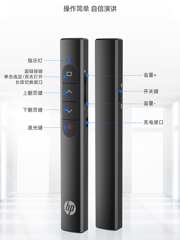 HP HP multifunctional laser page turning pen charging ppt teacher with speech projection pen slide page flipper pen multimedia pen lecture battery infrared electronic pointer teaching