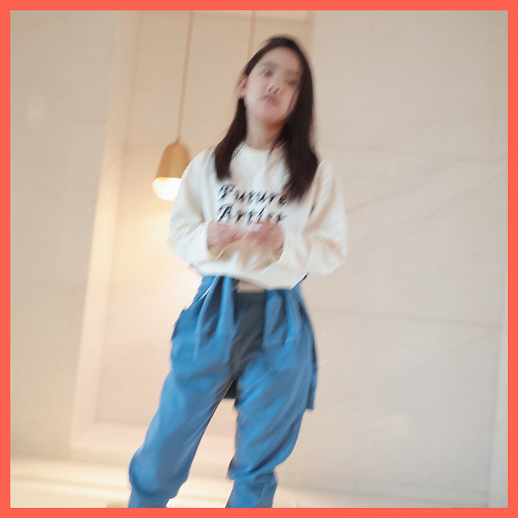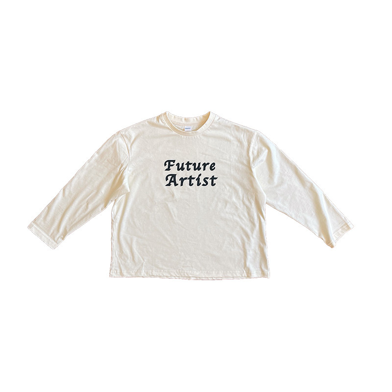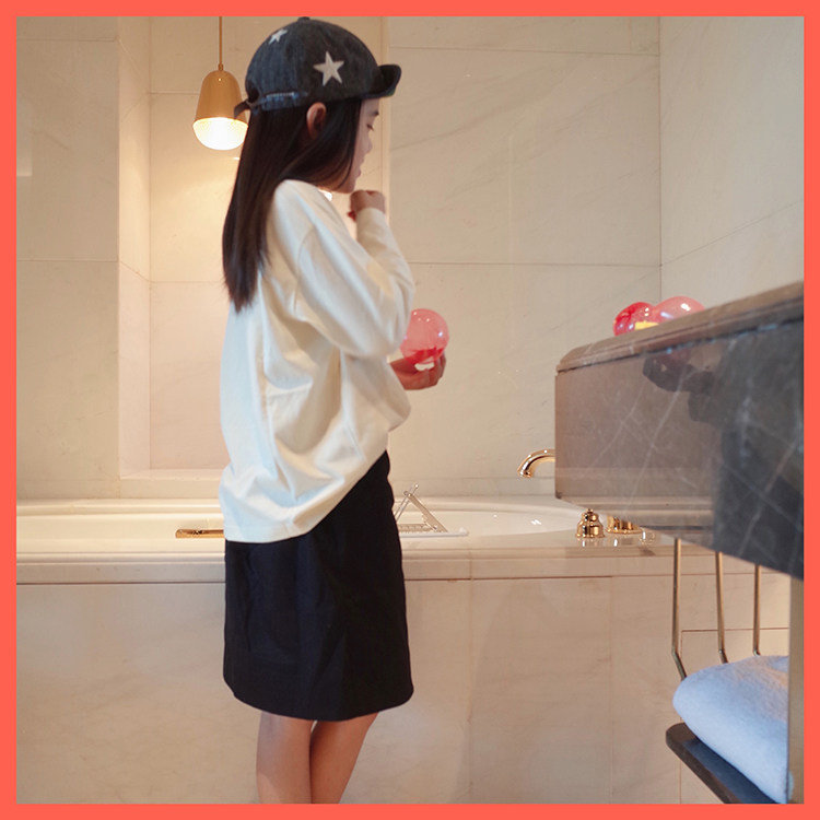 Doll Aimei autumn new female small and medium-sized children's loose lazy letters round neck pullover cotton basic long-sleeved T-shirt