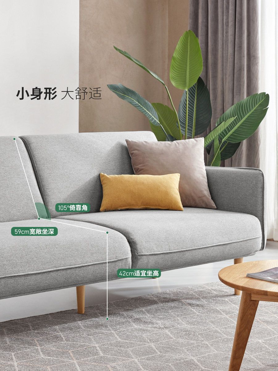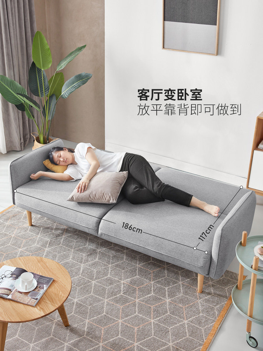 Genji wooden language simple modern sofa bed living room multi-functional folding bed home small apartment three-person fabric sofa
