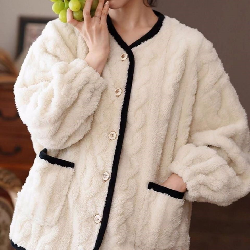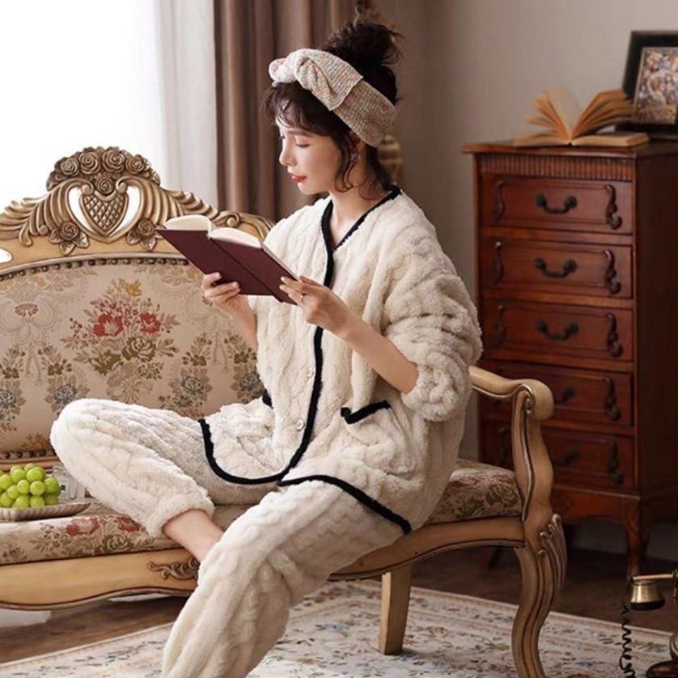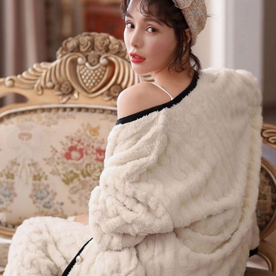Winter galloff thickened pure colour flannel velvet outside wearing teenage sweet and minimalist Coral Suede Pajamas for a woman's home in winter