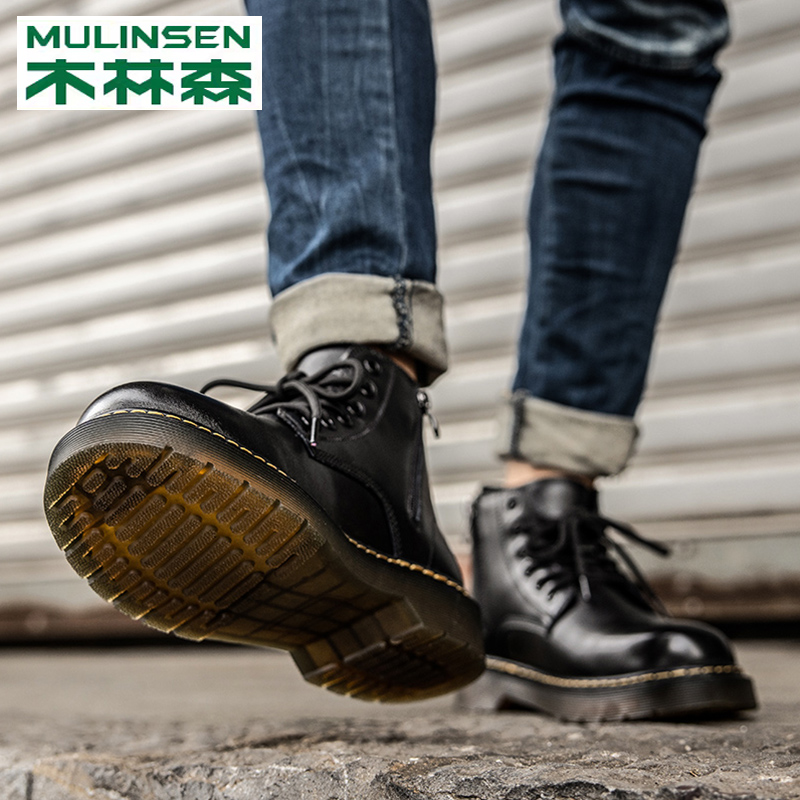 Wooden Martin Boots Men Zip Boots Tide Leather High-Line Men Shoes New Spring Handling Low Help Boots