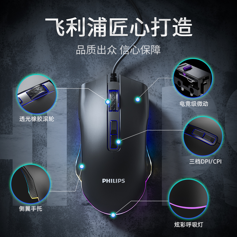 Philips Gaming Slip Rat Cable Electric Race Private Notebook Desktop Computer Office General Lol Eat Chicken cf