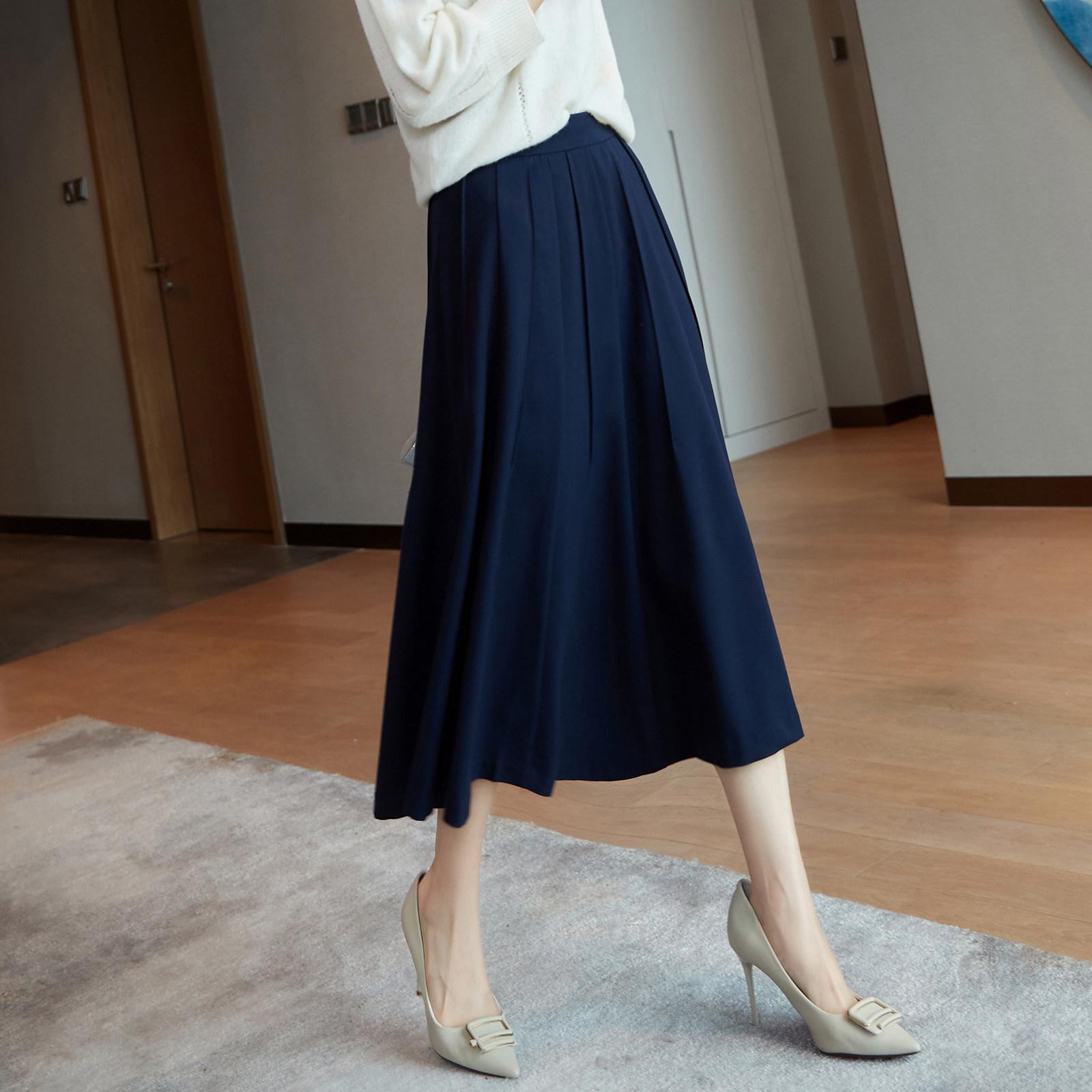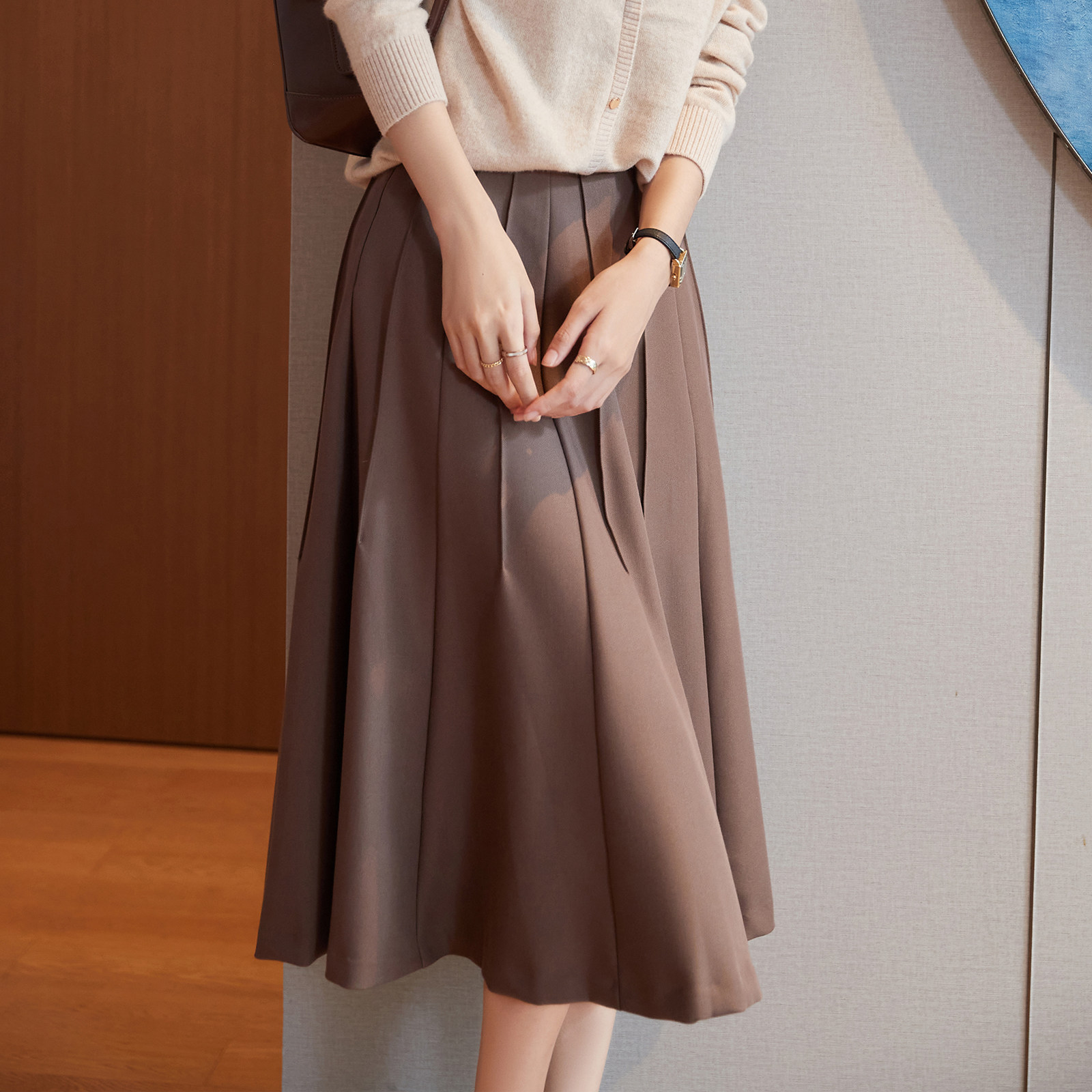 Wear Japanese elegant LADY style 2022 autumn and winter loose high-waist hip-covering all-match coffee-color temperament skirt