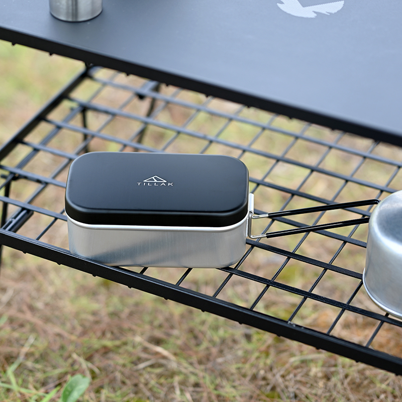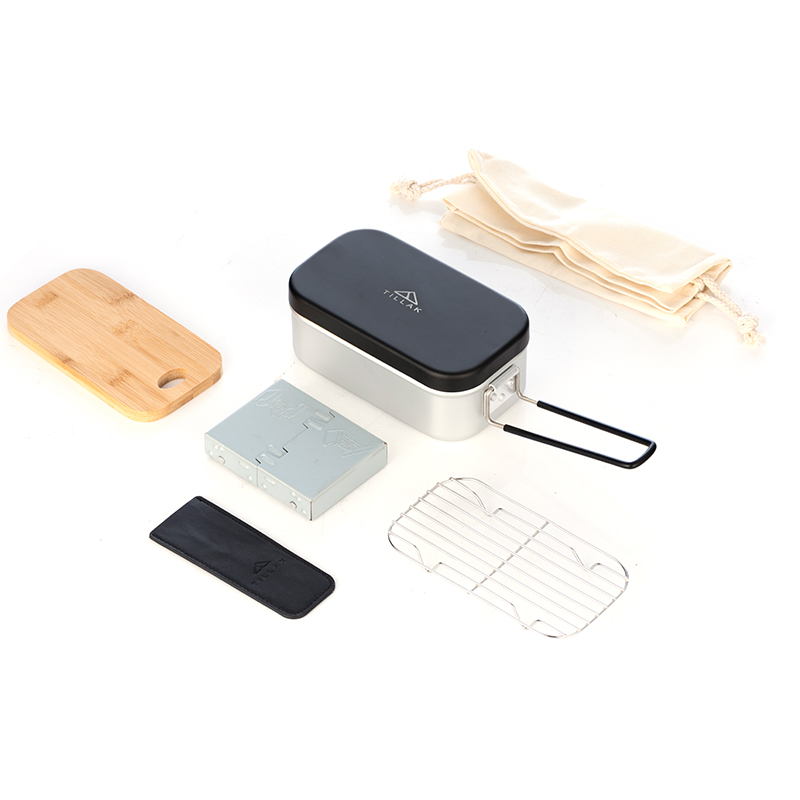 Tillak Aluminum Retro Lunch Box Black BC Style Camper Outdoor Camping Alcohol Stove Chop Board Set