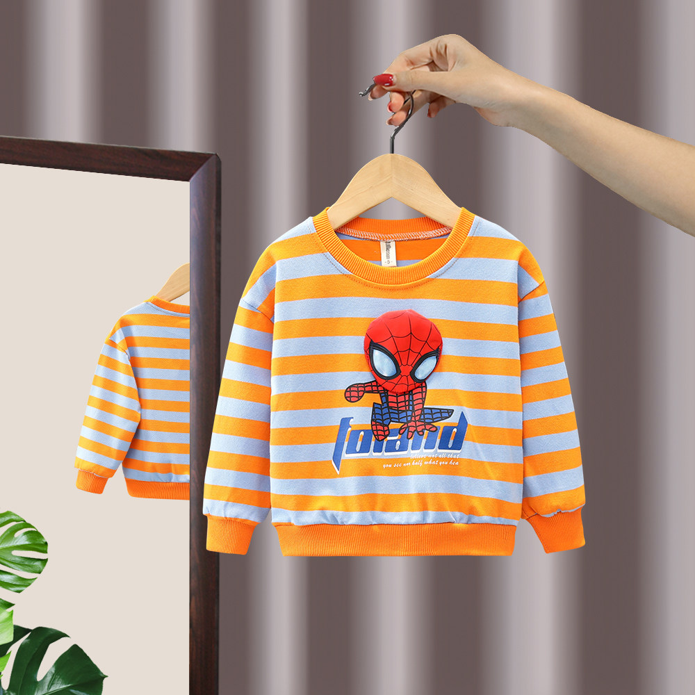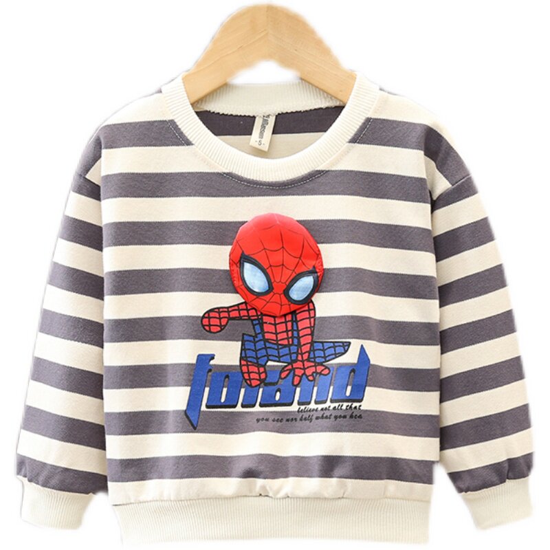 Boys Spring and Autumn Striped Casual Tops Handsome Boys Spiderman Tops Baby Cotton Round Neck Pullovers Trendy Children
