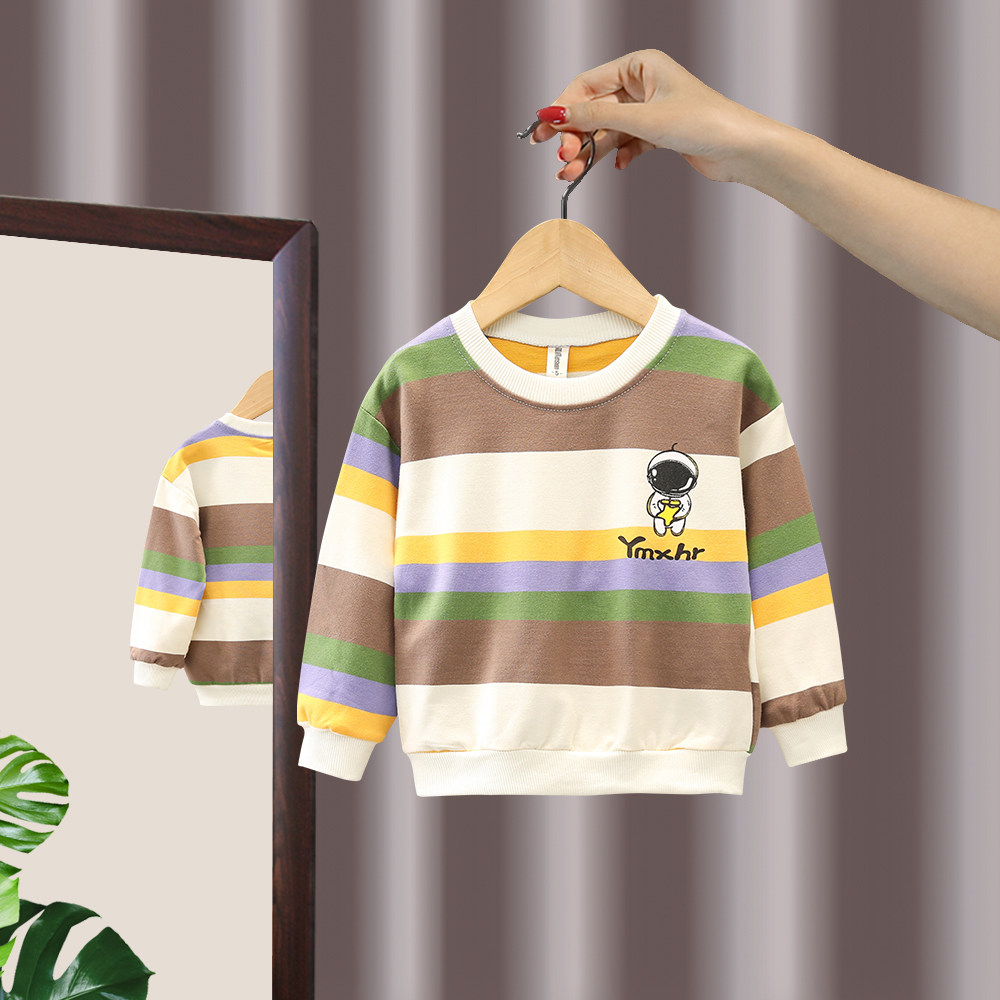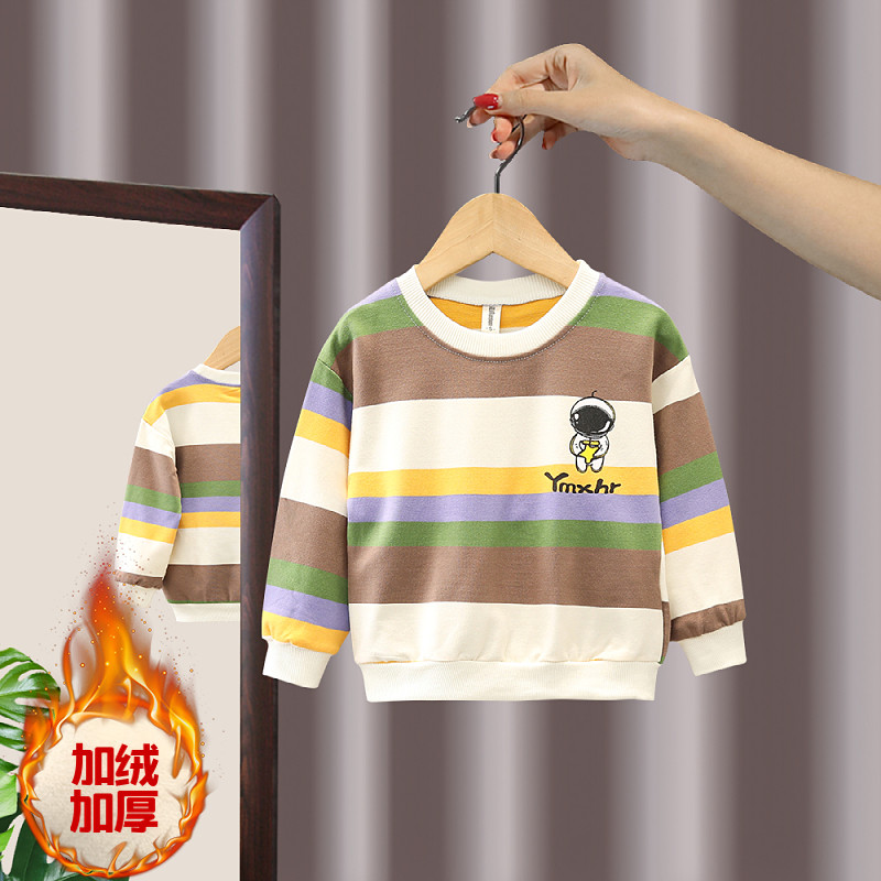Children's striped casual tops Western style boys' velvet color striped tops middle and small children's pure cotton inner clothes children's clothing Korean version