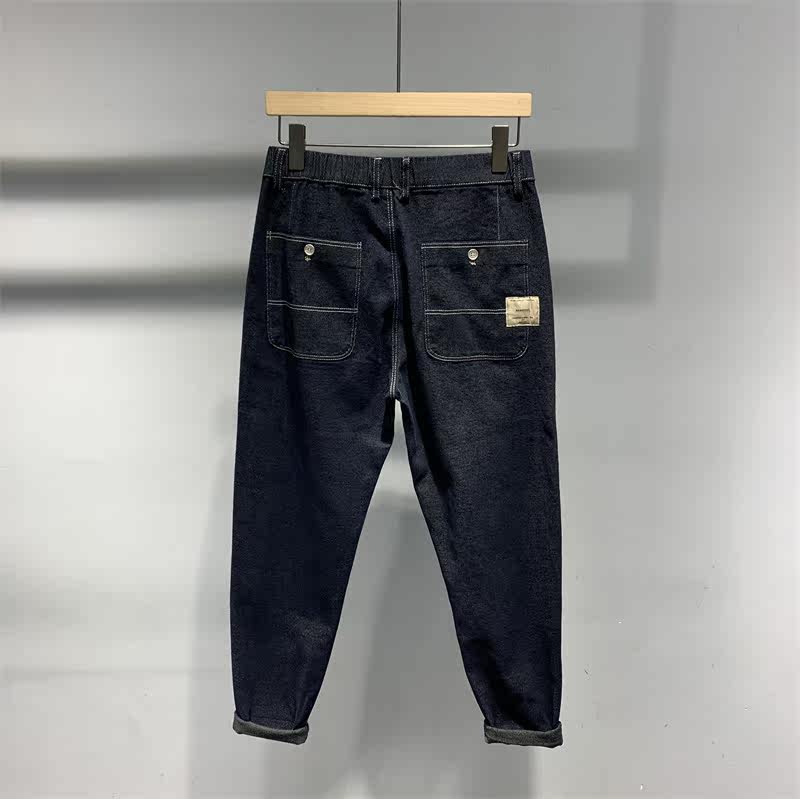 2021 Fall new dark blue jeans Men's original Cebu Wind retro Han version Trend easy with little footed Harlan pants
