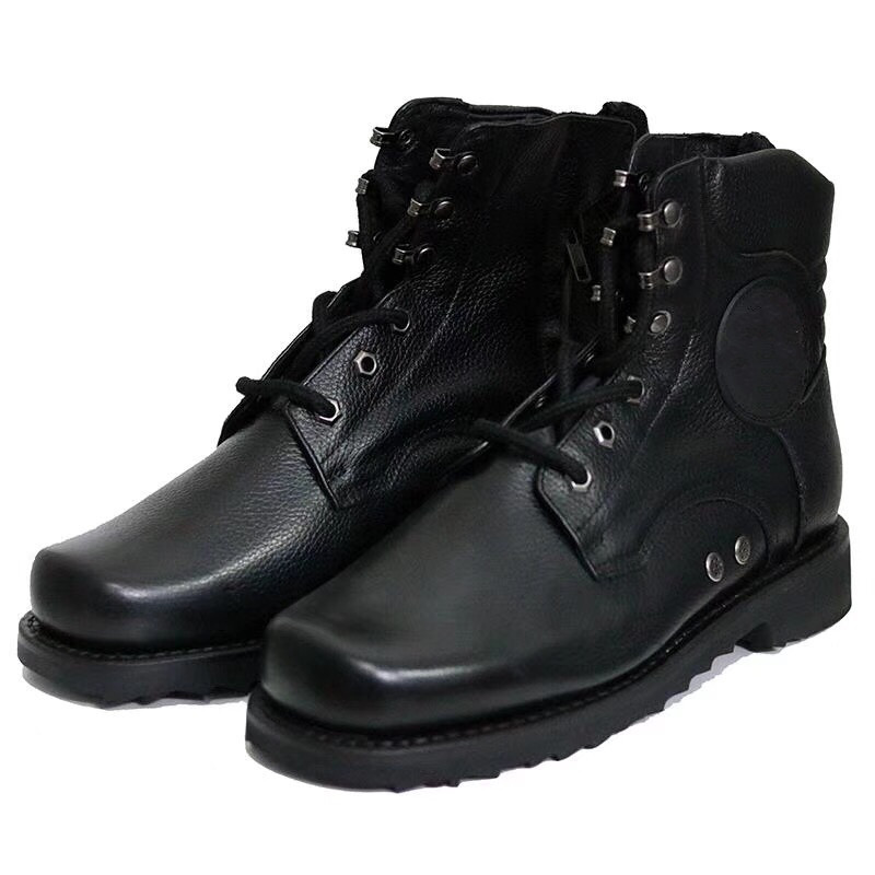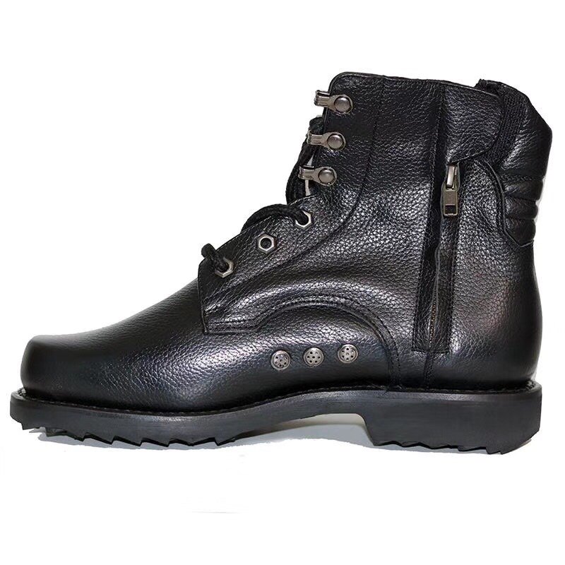 Genuine 02 Spring Autumn Flying Leather Boots Tactical Boots Man Black Bull Leather Breathable Midcylinder Boots