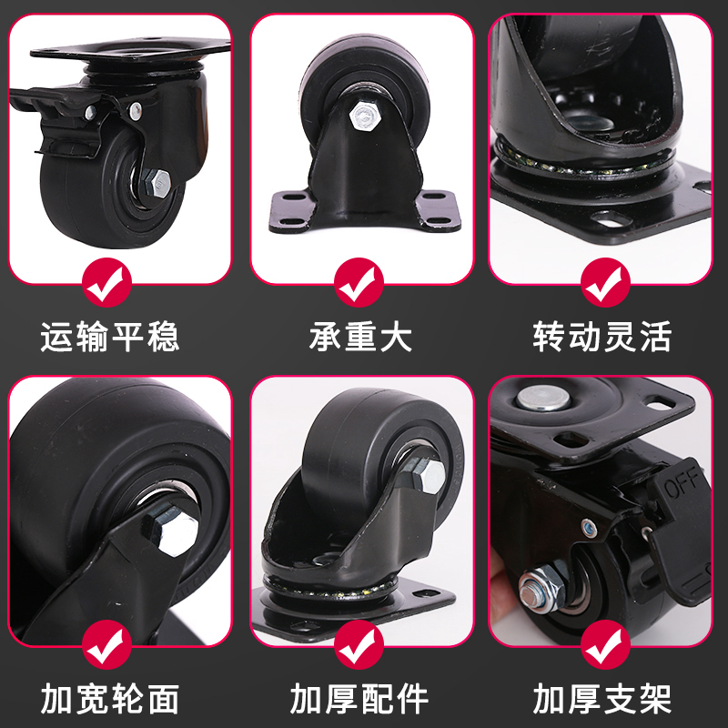 3 inch low center of gravity caster universal wheel load-bearing 2 industrial heavy duty steering wheel plus brake wheel shock-absorbing trolley corner wheel