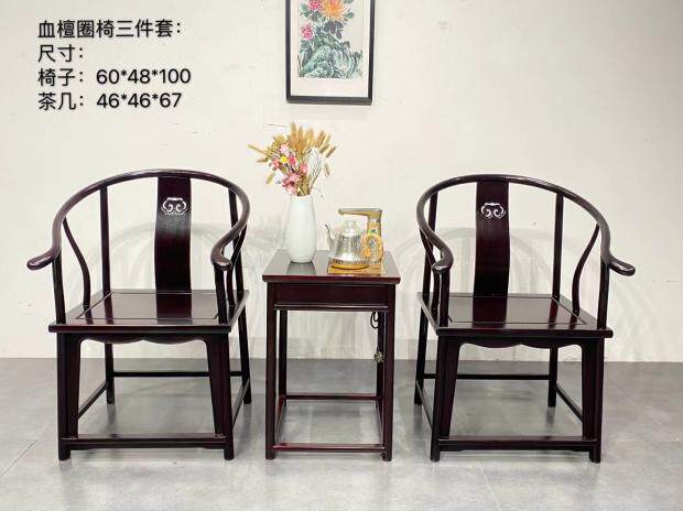 Zambian blood sandalwood palace chair three-piece ring chair official hat chair Chinese Taishi chair mahogany chair solid wood tea chair