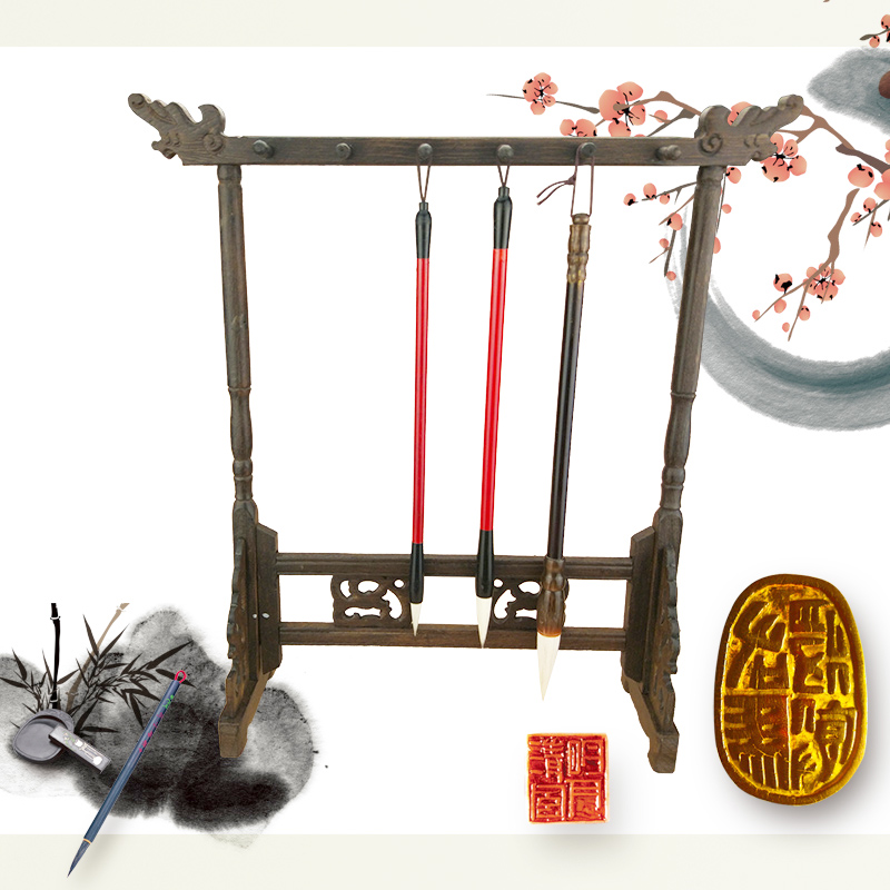 Pen holder brush pen hang brush holder pen hang student Wenfang Four treasures of ancient hanging brush pen holder solid wood brush shelf