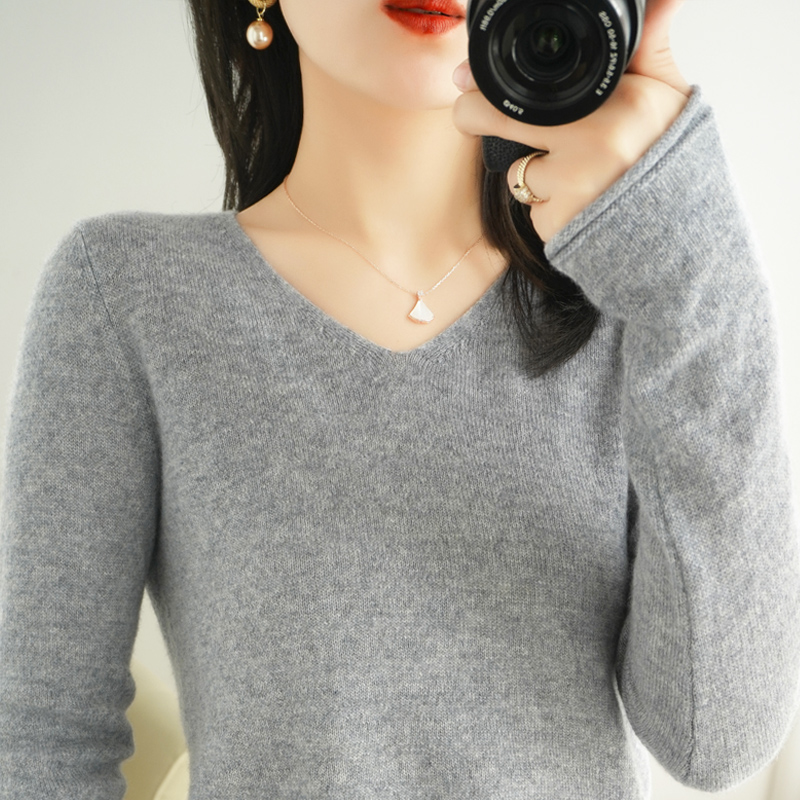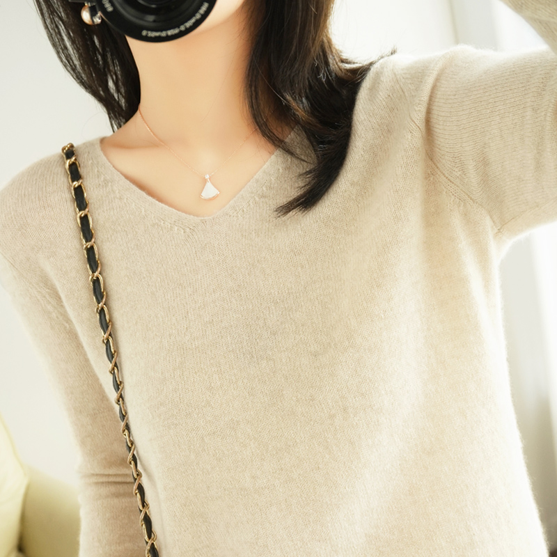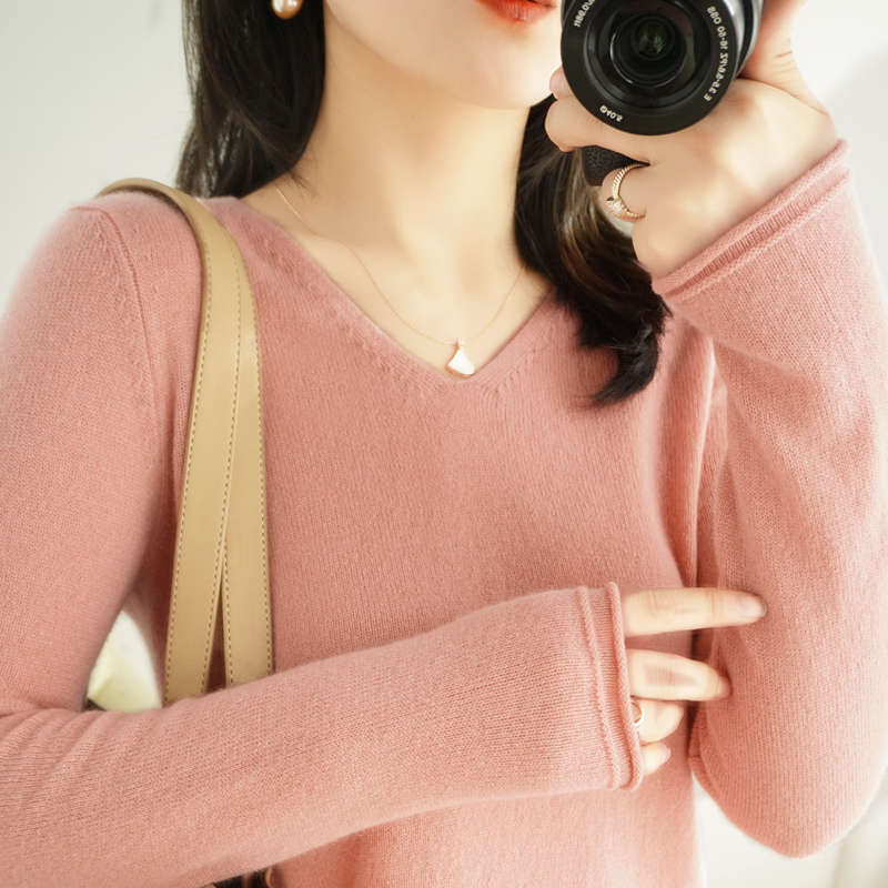 21 early autumn new stitch sweatshirt woman V collar pure color Autumn winter sweater blouse jacket non cashmere long sleeve bottom 100 hitch