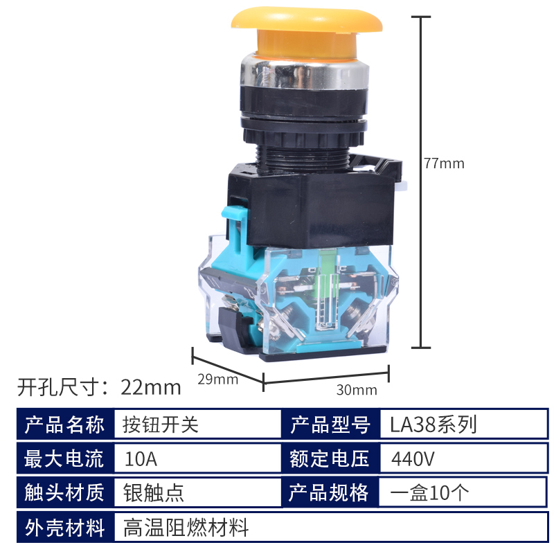 la38-11m mushroom head self-reset power point motion button switch 22mm start stop self-lock open and close