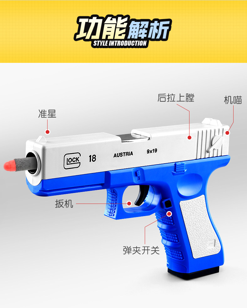 M1911 simulation soft bullet gun Glock shell ejector Glot gun pistol revolver children's toy toy gun small
