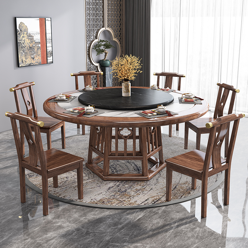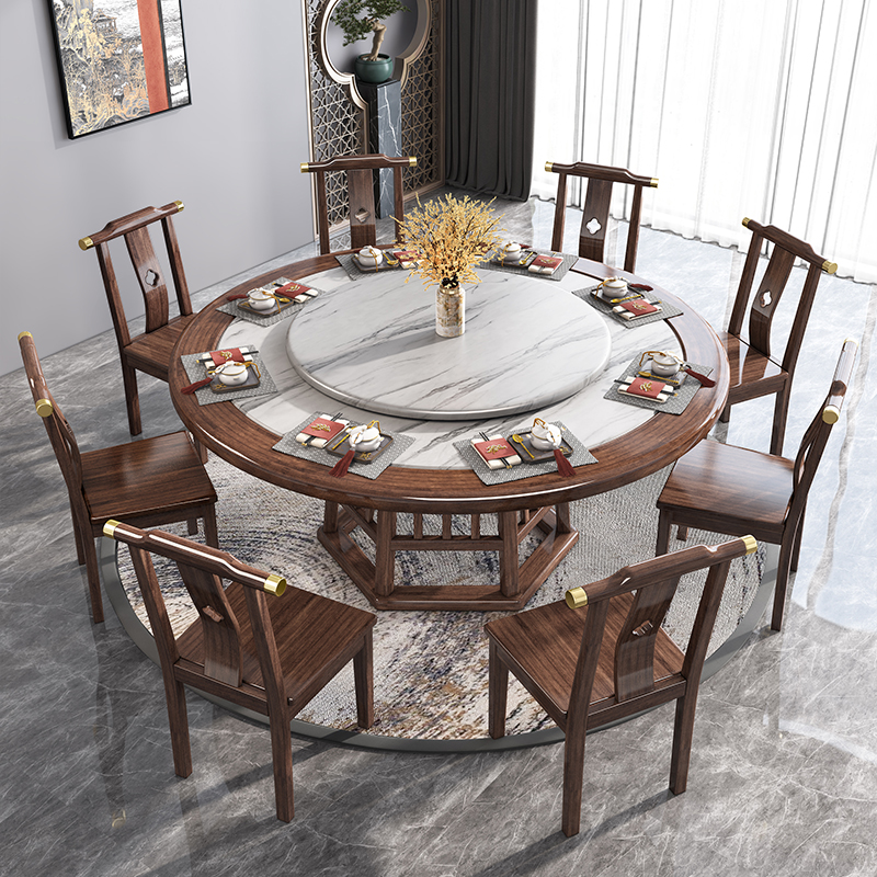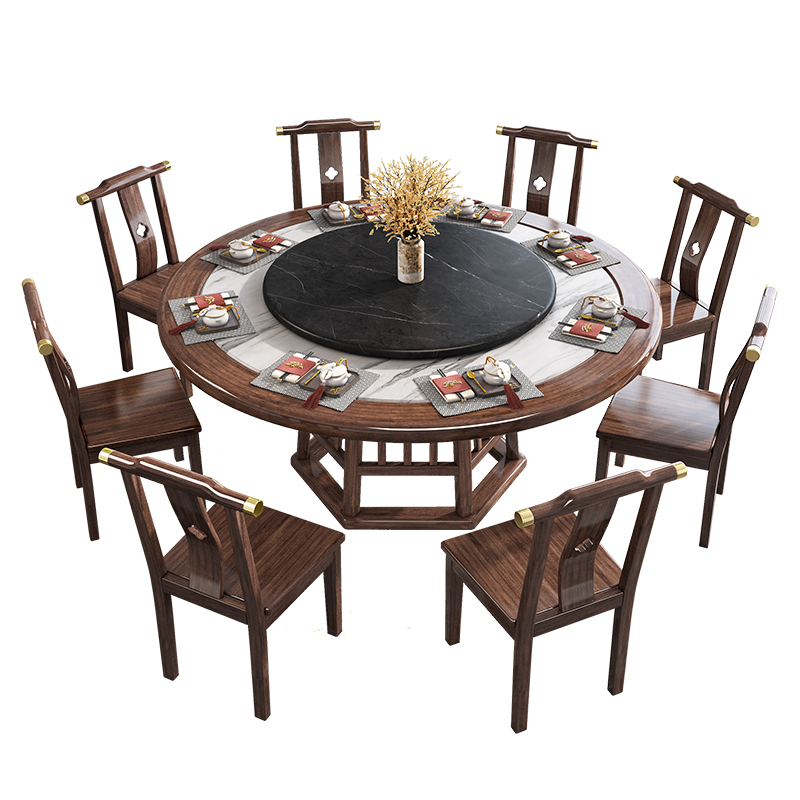 New Chinese Rock Plate Solid Wood Dining Table And Chairs Combined Walnuts Wood Home Small Family Type Round Table Modern Minima Light Extravagant Dining Table