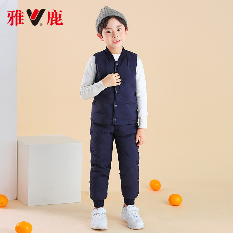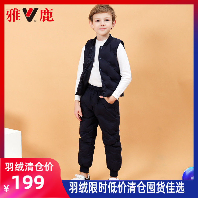 Yose Boy Clothing Plume Neri Child Girl Boy Light Thin Down Clothes Suit Baby Machia Down Pants Suit
