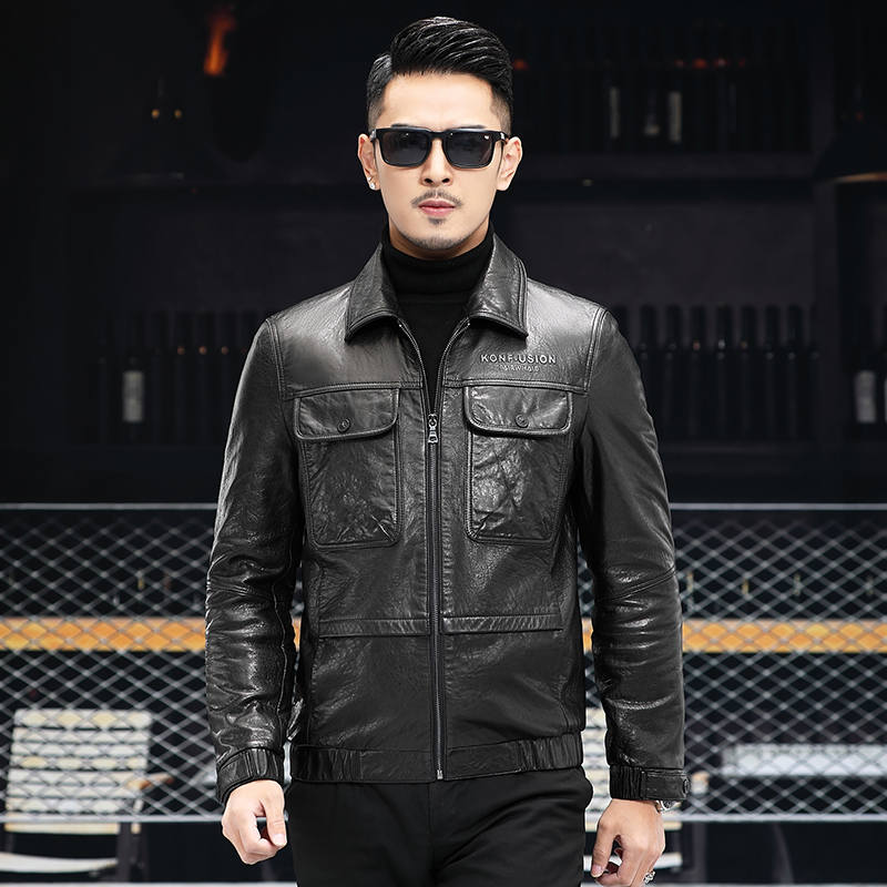 2021 new genuine leather clothing men jacket oil wax sheep leather jacket spring autumn trend short youth locomotive clothes