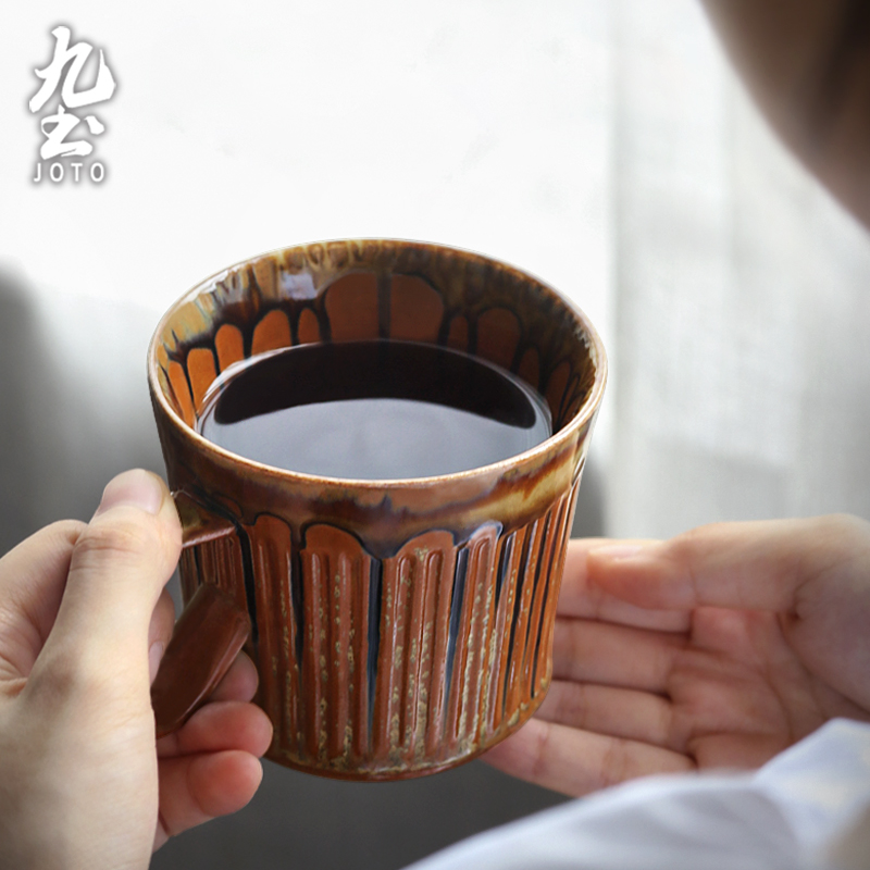 Jiutu Japanese-style stoneware coffee cup retro mug simple household handmade kiln art cup hand-brewed coffee cup