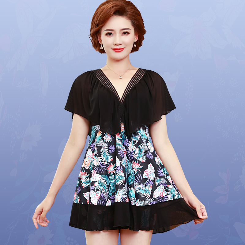 Highpot swimsuit female one-piece cover belly is thin and conservative fashion large size fat mm 200 catties middle-aged and elderly mother hot spring