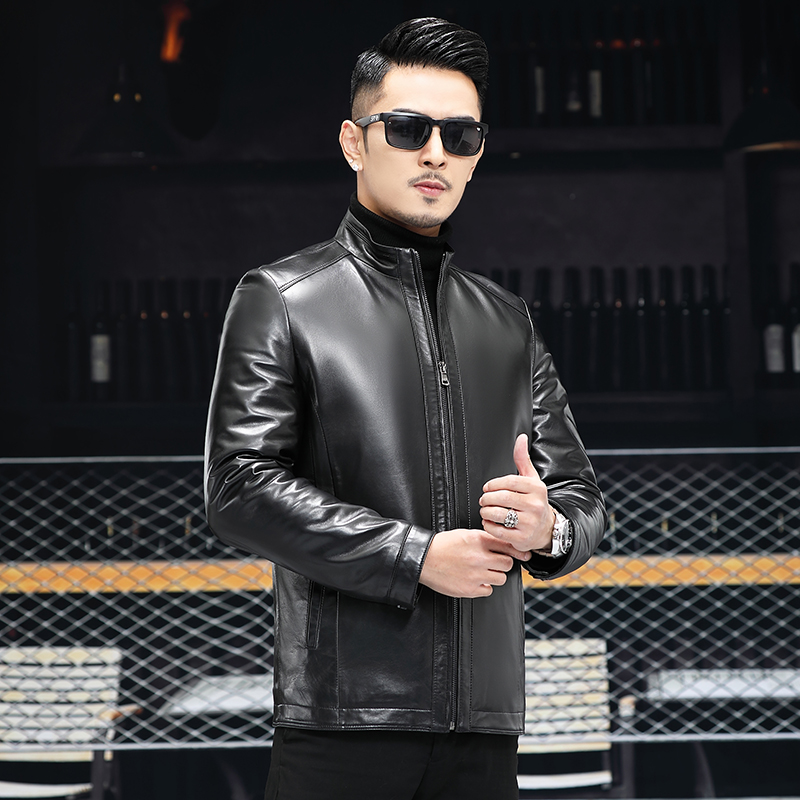 New genuine leather leather clothes men's short and cotton sheep leather jacket trendy collar locomotive clothes autumn and winter casual jacket