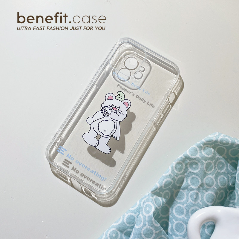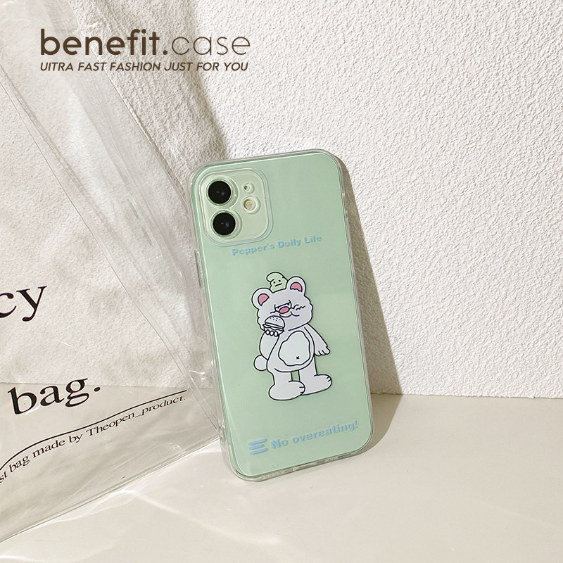 Benefit Korea in cute cream bear for Apple 13 promax mobile phone protective shell iPhone 12mini protective case xsmax cartoon xr silicone gel