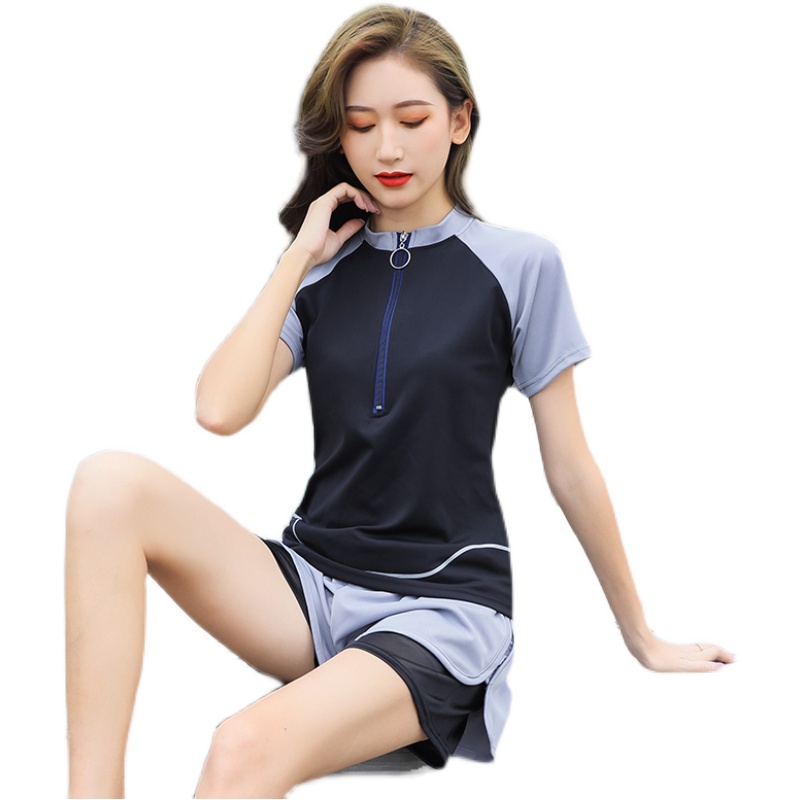 Swimsuit women Summer 2022 new Korea Advanced senses Two-style flat angle short sleeves Loose Conservative Slim size Size Swimsuit