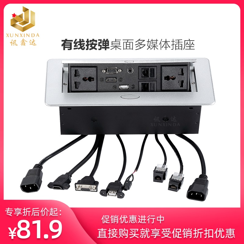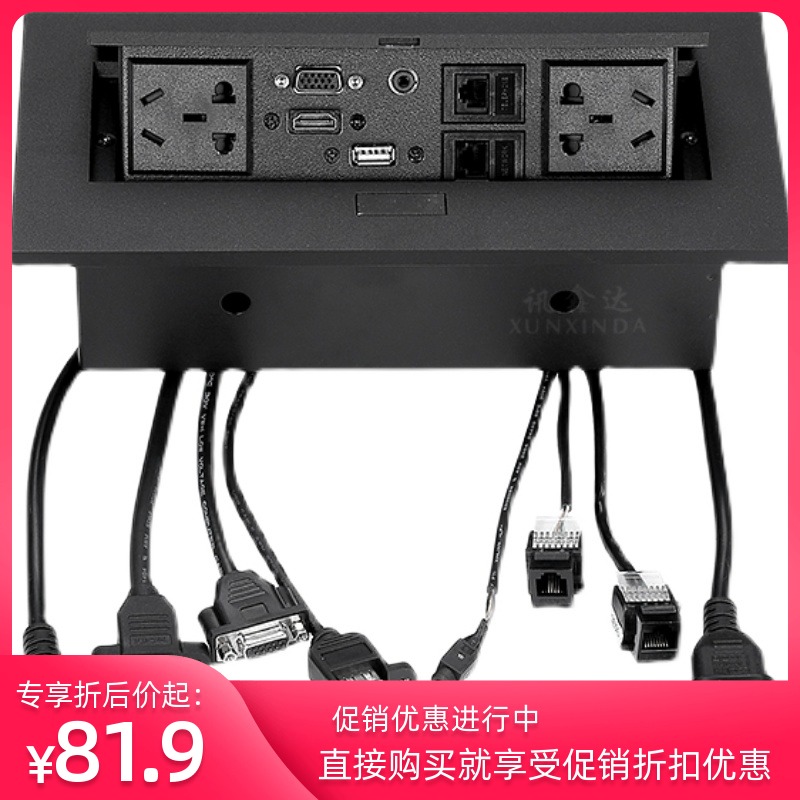 Press tape line welding-free multi-function office desk conference desktop wire box multimedia power socket embedded