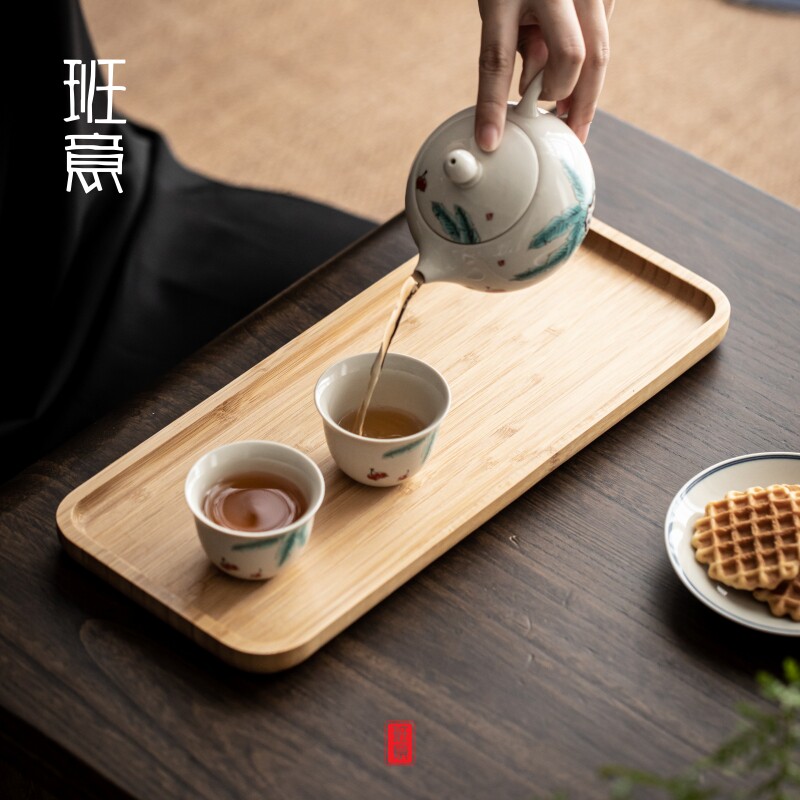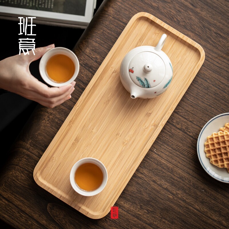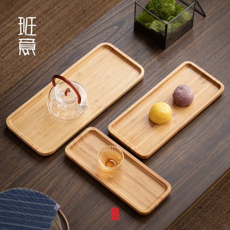 Bani Bamboo Pan Wooden Tray Woody Tray Dinner Plate Tea Cup Barbecue Dish Rectangular Tea Tray Day Style Home Nursery